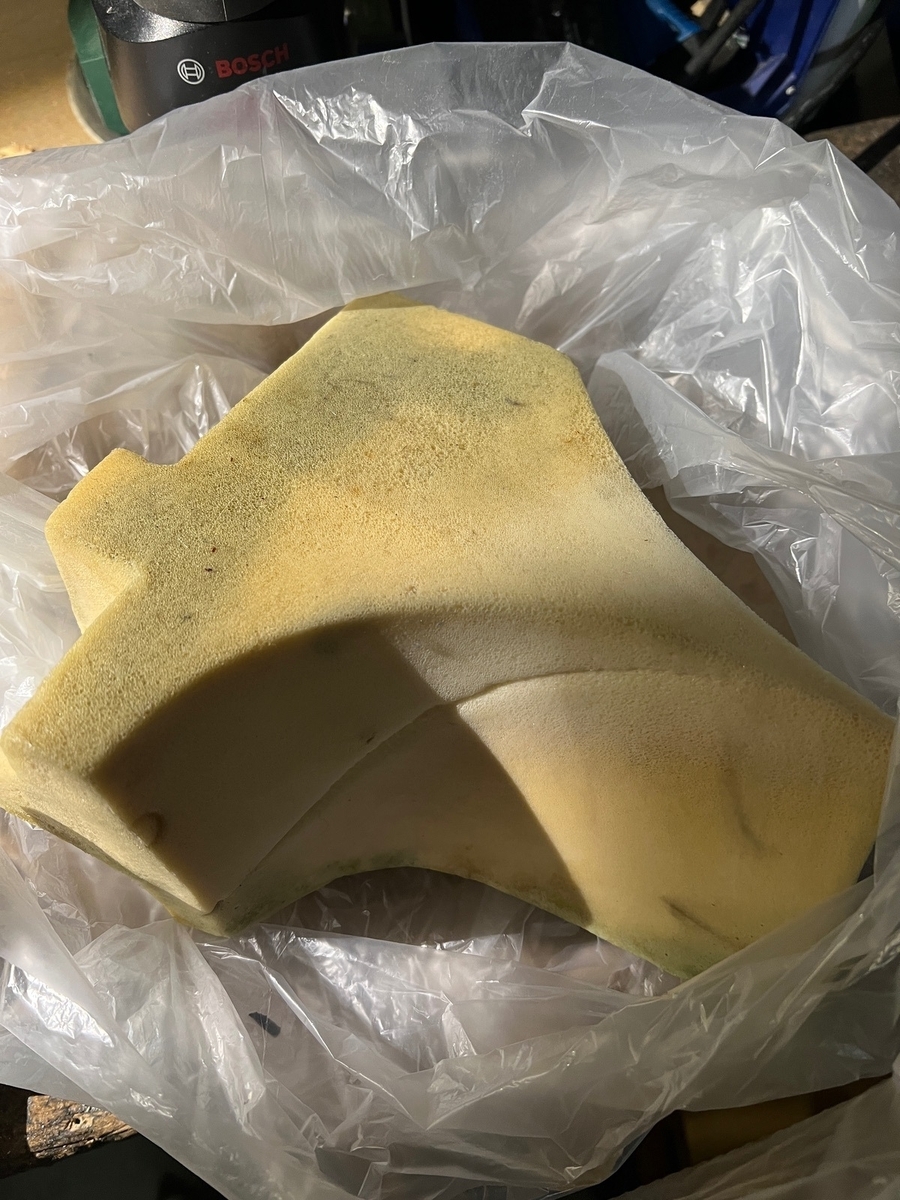 Zum reinigen und reparieren musste ich alles ausbauen. Das meiste Öl wurde von einem Schaumstoff-„Klotz“ (siehe Bilder unten) aufgenommen.