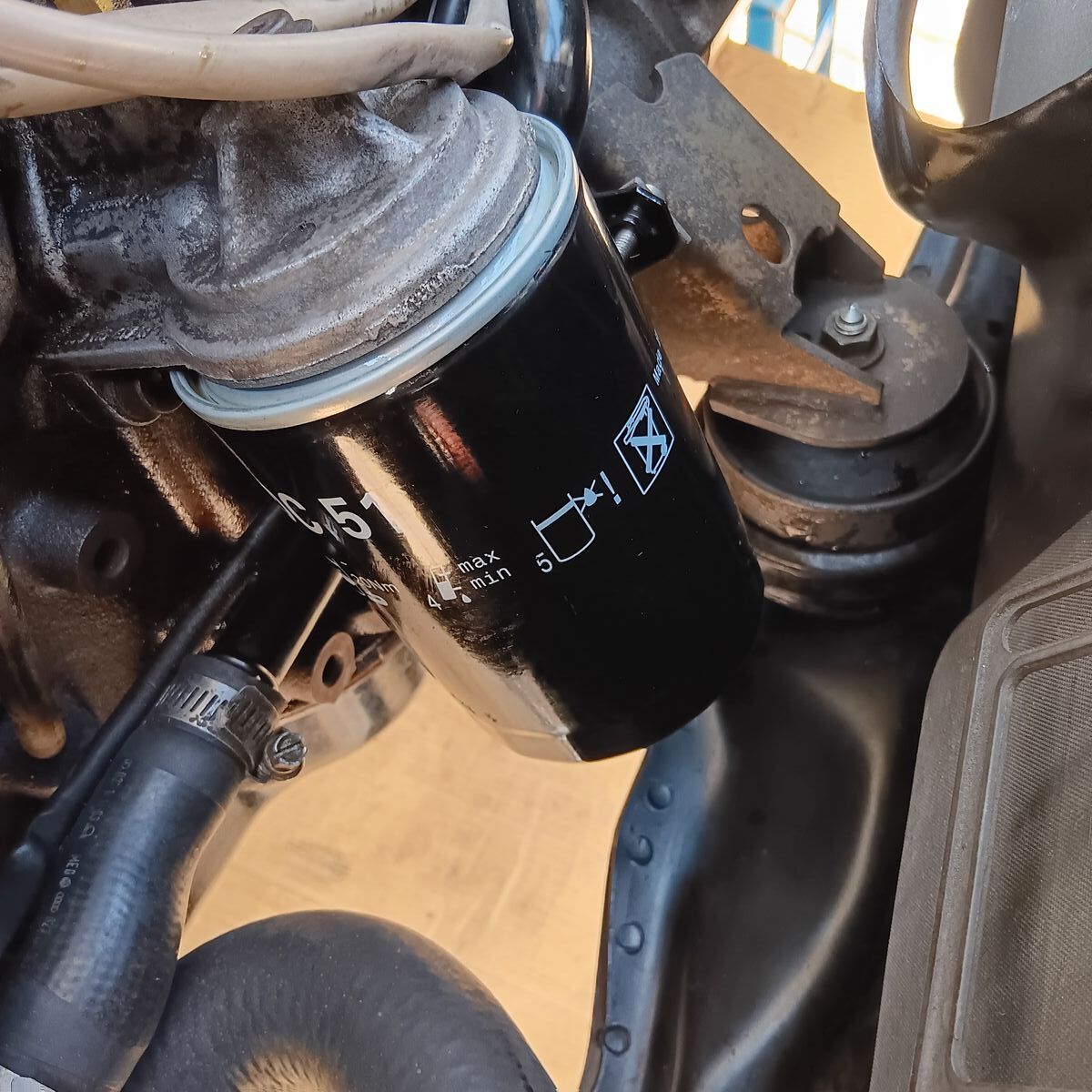• Ich sehe, dass du den Wasser-/Ölkühler entfernt hast. Ich bin den umgekehrten Weg gegangen und habe den Originalkühler durch einen größeren ersetzt, der etwa doppelt so groß ist. Ich kann keinen größeren Filter einbauen, da ich keinen Platz dafür habe.