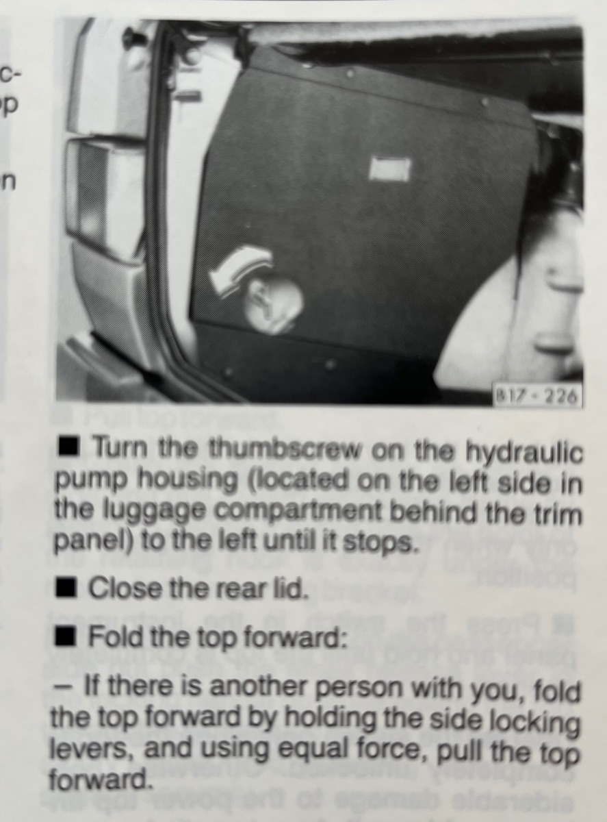 Mein Verdeck ist ausgeschaltet seitdem ich das Auto bei mir ist. Beim misslungenen Versuch es neu beziehen zu lassen in Osnabrück, hat Jörg Dilge den Hebel einfach umgelegt und ich den Knopf gedrückt.