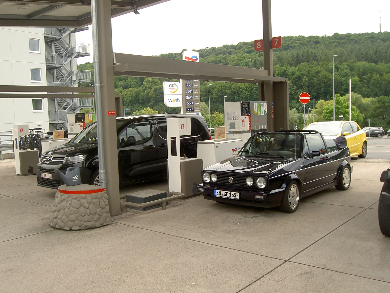 - Vollwertiges Ersatzrad, Kupplungs-und Gaszug, Thermostat, Spannungsregler, Zünd-Anlass-Schalter, Verteilerkappe, Zündfinger, Thermoschalter, Temperaturfühler, Schaltungs-Stangen und Führungshülsen, Gaspedalnupsi, Notfall-Pedalhülse, Sicherungen, Ersatzlampen, Keilriemen, Benzinschläuche, Haupt- und Vorförderpumpe, Zündkerzen, Radlager, Kühlerschlauch-Dichtungsband und genug Werkzeug um das ganze Fahrzeug nebst Elektrik zu zerlegen. Da der Phönix keinen wirklichen Kofferraum hat wanderte das vollwertige Ersatzrad in Eikes Cabrio denn der Kofferraum war leer. Die Rückbank im Phönix war ausreichend groß um unseren Koffer aufzunehmen - ein zweiter Koffer mit langen Klamotten, festen Schuhen und Jacken wanderte ebenfalls in Eikes Auto. Dieser wurde ebenfalls nicht benötigt. So war mehr als genug Platz für den ganzen Krempel.