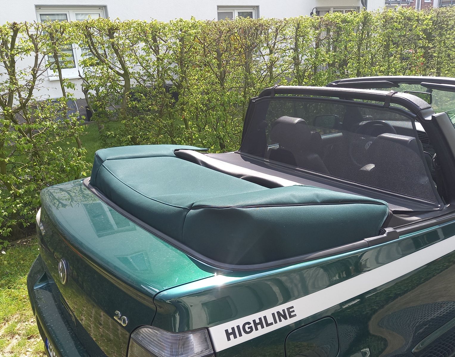 • Naja, der Beetle hat ja keinen Überrollbügel mehr, weshalb du das Windschott an der Karosserie befestigen musst. Beim Golf 4 gibt es ja noch den Bügel, den man nutzen kann. Mit der Notwendigkeit, Lösungen ohne Bügel zu finden sind dann irgendwann diese Rahmenkonstuktionen aufgekommen. Vorteil von denen, die kann man auch schnell klappen. Nachteil, die sind auch noch größer als die L-förmigen Rollos.