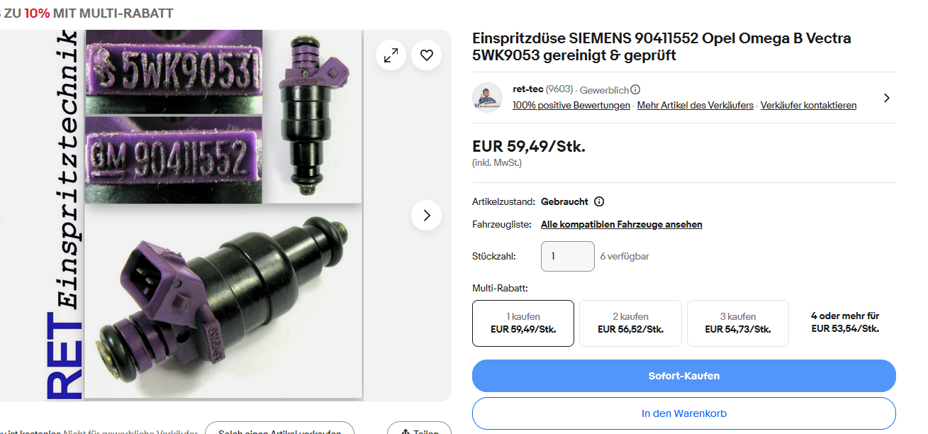 Die alten Düsen aufarbeiten lassen - 600 € für neue originale bezahlen - die VR6-Düsen nehmen - die vom Oldtimerwerk kaufen - usw - da habe ich dann immer den Browser zugemacht und war froh das ich "Reserve" inner Ecke habe