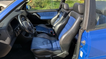 Er hat elektrische Fenster, elektrisches Verdeck das auch funktioniert (Leitungen kamen schon neu), Sitzheizung, NSW, blaues Verdeck, die originalen 15" BBS mit neuen Reifen, Iso-Fix (zumindest auf der Rückbank, aber gut für meine Kids). Achja und TÜV.