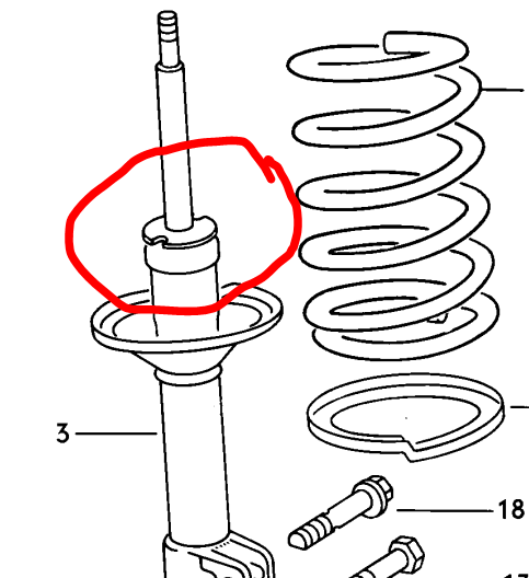 Bist du. Er sucht einen fetten Schlüssel wo er die ÜBERWURFmutter ab- und anschrauben kann um die Stoßdämpferpatrone aus dem Federbein zu entnehmen:
