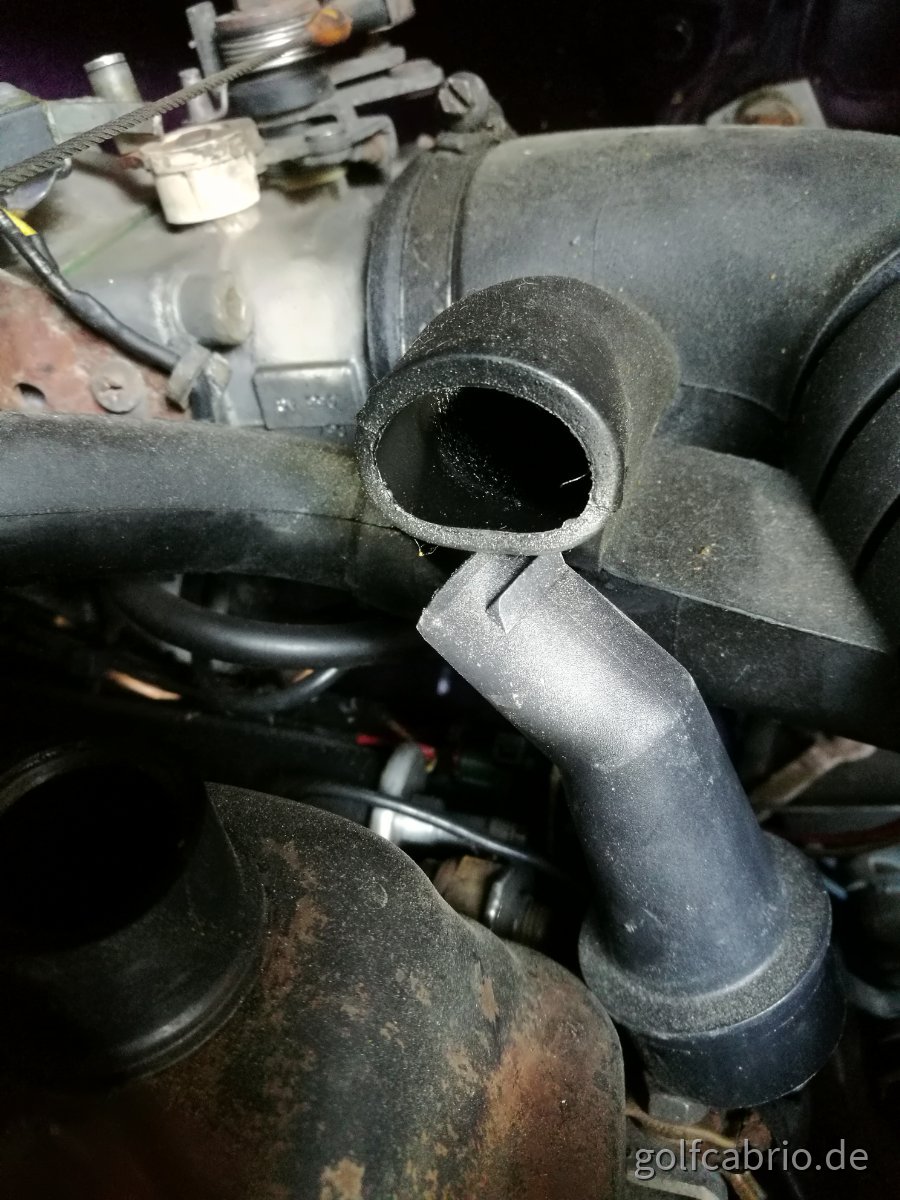 Ich habe festgestellt, das in meinem Ansaugrohr sich Öl gesammelt hat. Den Grund habe ich ziemlich schnell ausgemacht. Über das Druckregelventil der Entlüftung kommt dies über die Schlauchverbindung in das Ansaugrohr.