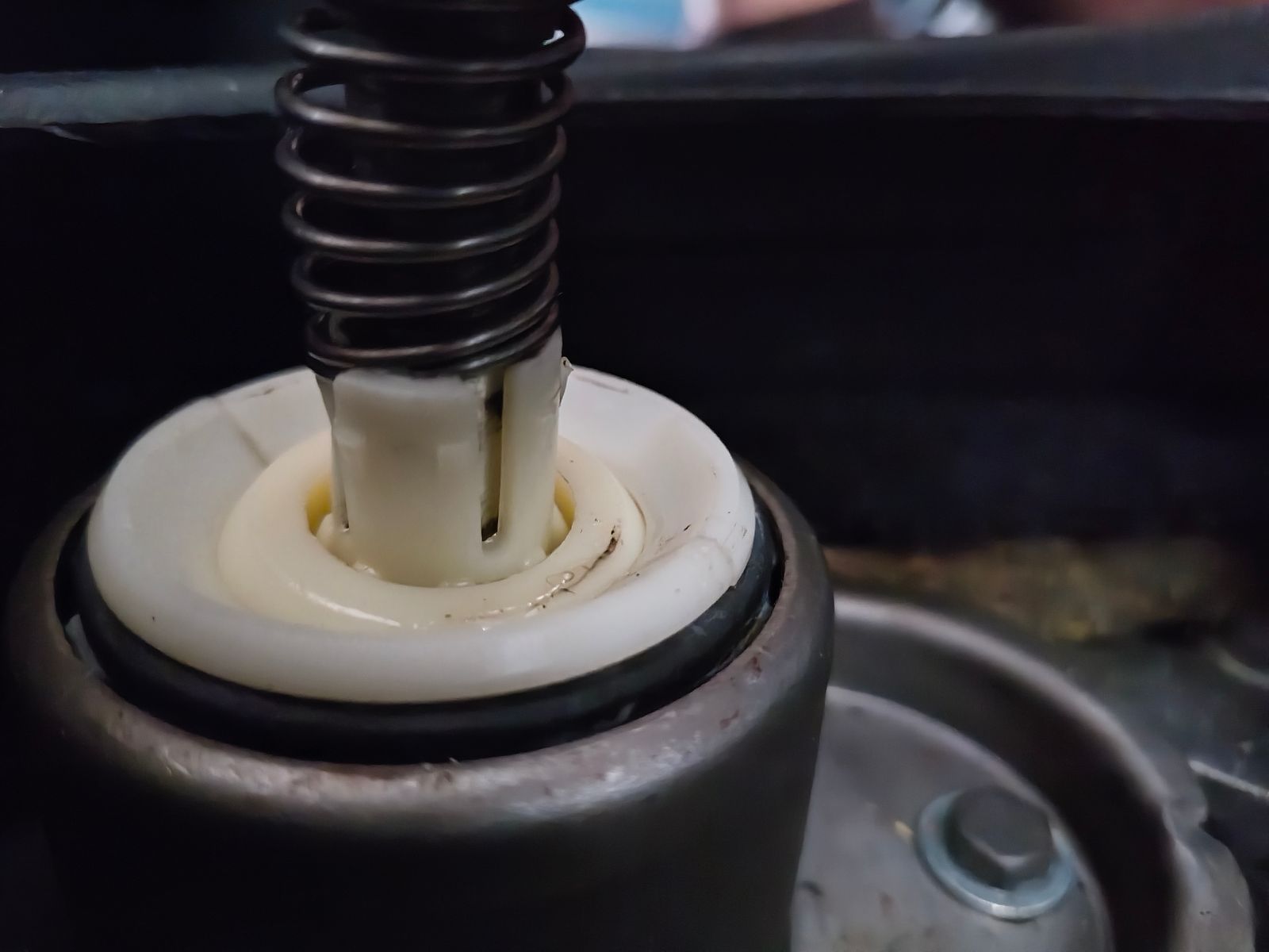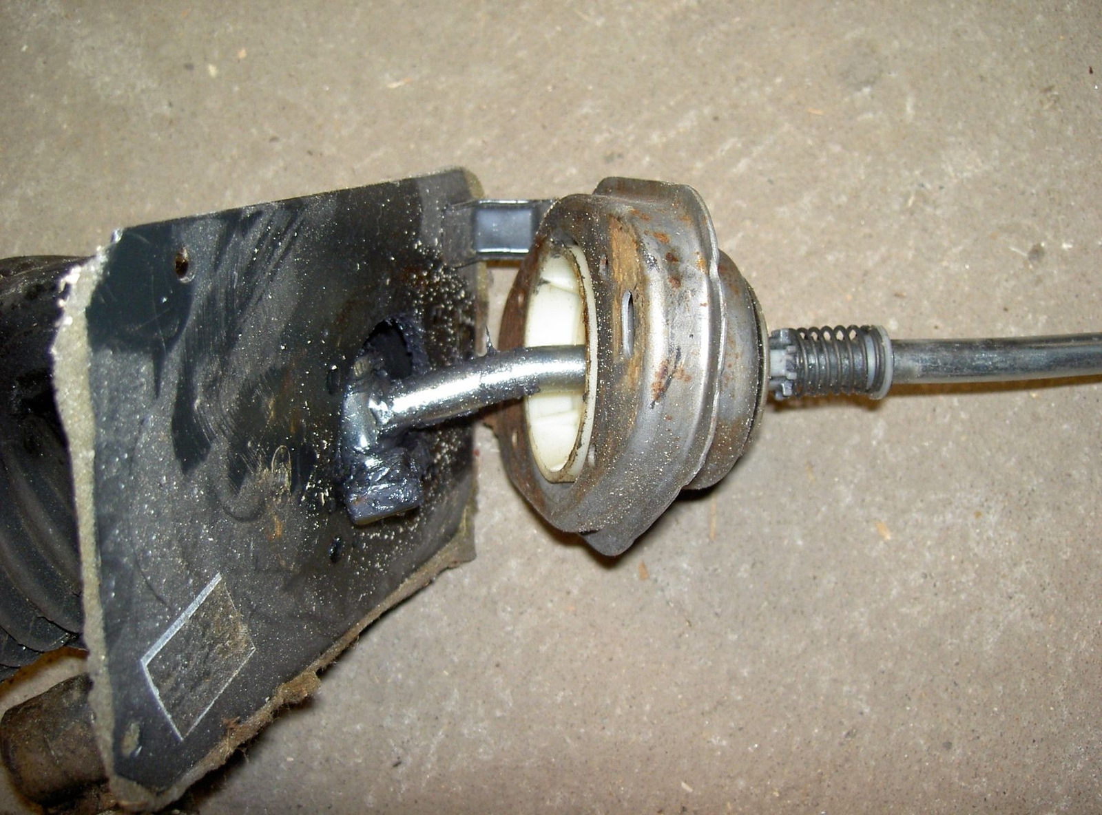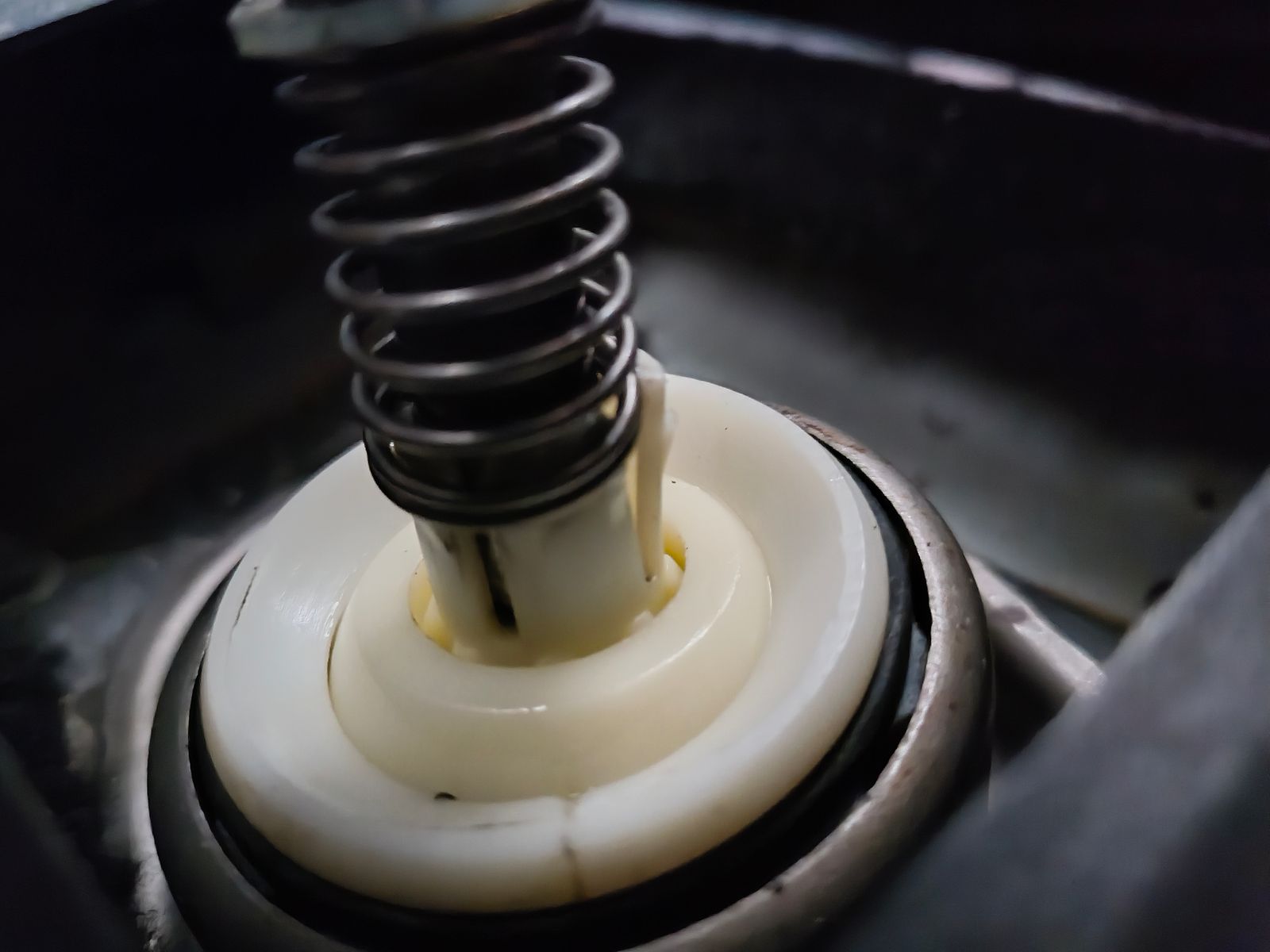 • Wenn diese Gummikugel da (exakt in der Mitte des Bildes) verschlissen ist oder komplett schmiermittelfrei ist, dann schaltet sich das auch komisch.