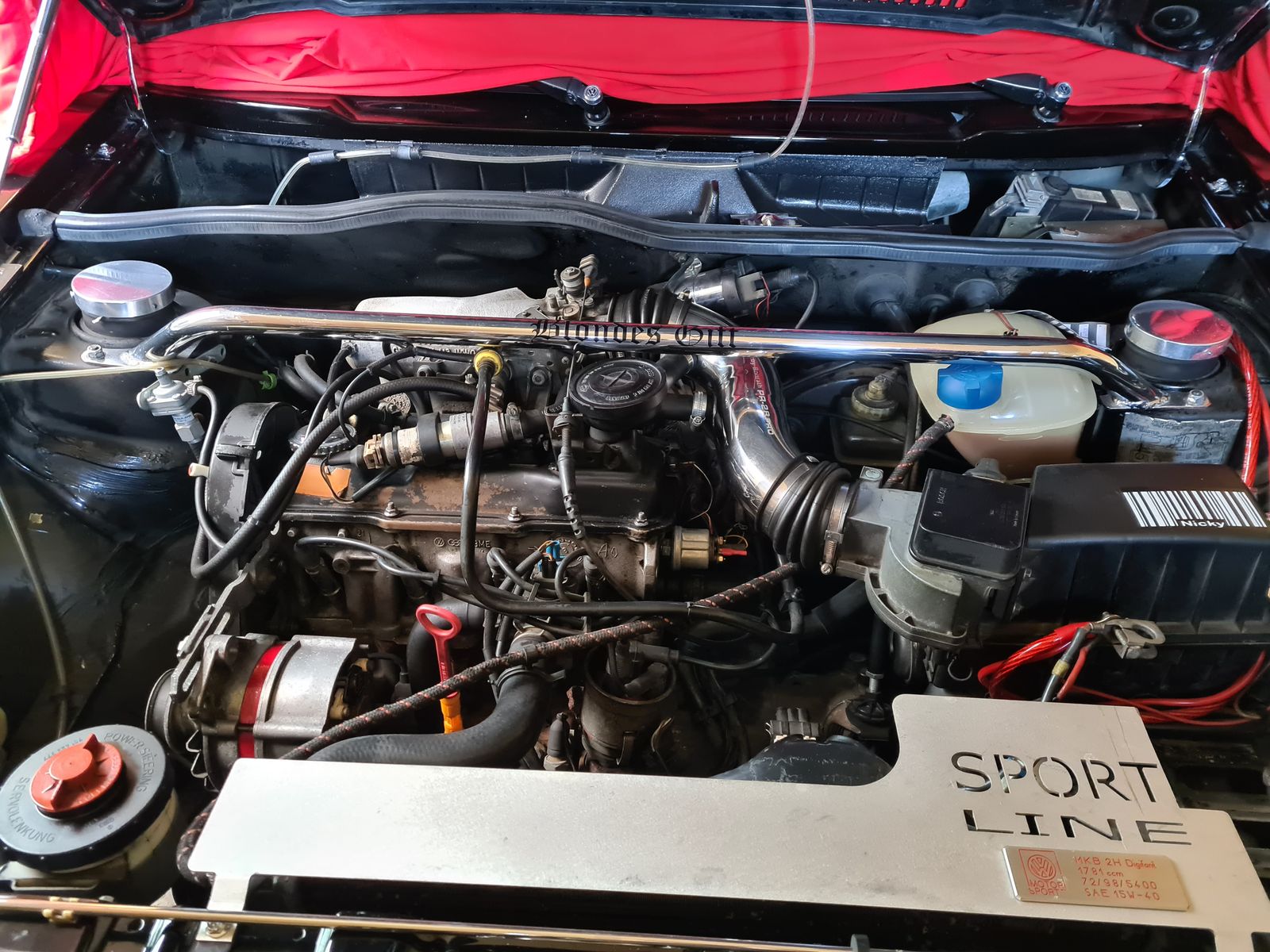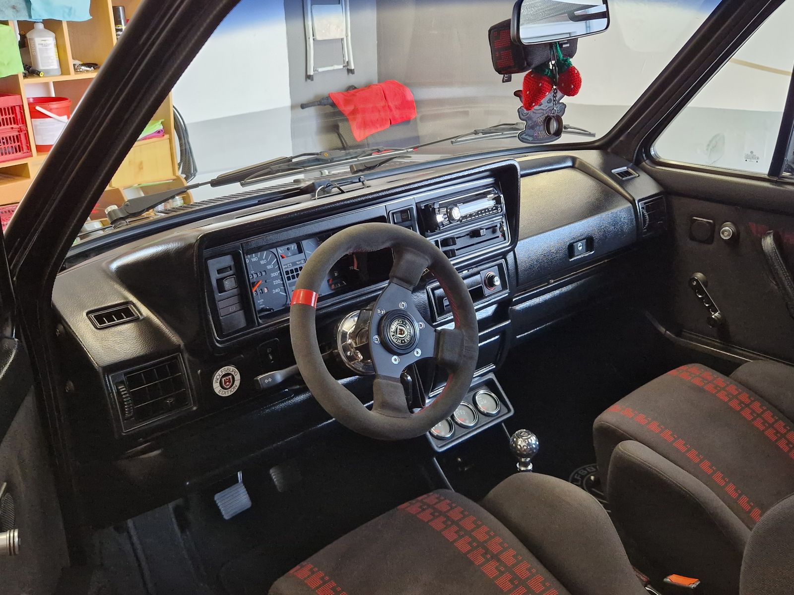 Ein neues Stoffverdeck, Stoffpersenning, XL-Windshot, Kühlergrill mit Chromrand, generell viele Chromteile, und WOB Edition Parts, ein Kofferraumausbau, 28er Raid, rote Anschnallgurte,GTI Tacho mit blauen Led's, Zusatzinzrumente mit roter Beleuchtung, viele genähtes Zubehör im Sitzstoff (danke Stephi), die Fifft kamen wieder rein, die SBL kamen wieder weg.