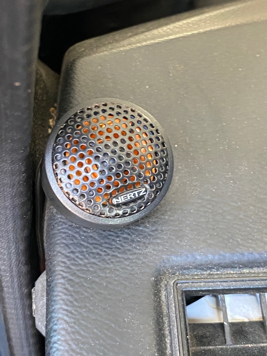 Es besteht aus zwei kleinen Hochtönern oben auf dem A-Brett und zwei LS in den Türen.