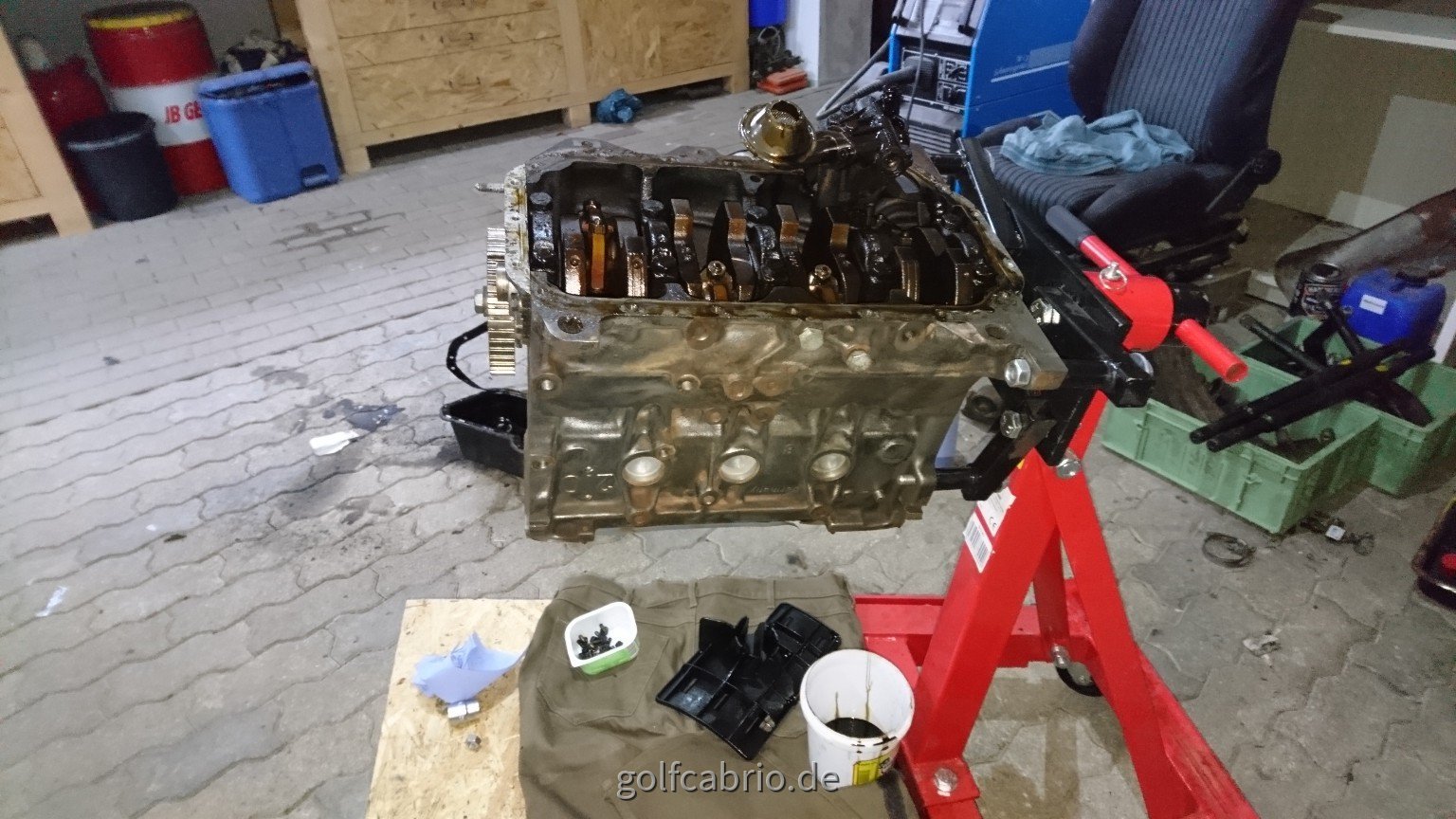 heute wurde der Motor in den Motorständer gehangen und mal die Ölwanne demontiert.