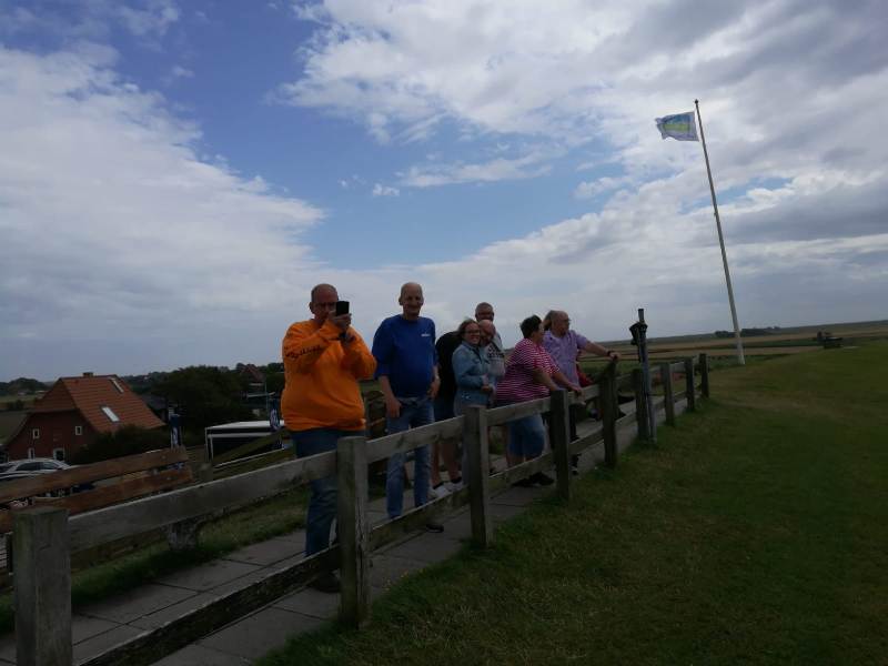 Unsere Strecke führt uns einmal um die Insel, dicht am Deich entlang. An der Badestelle „Westen“ angekommen, riskieren wir einen Blick über den Deich.