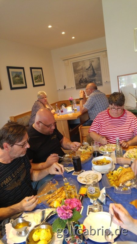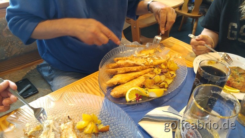 Im Anschluss an unseren Fotohalt haben wir unsere Fahrzeuge beim nahegelegenen Parkhaus am Binnenhafen abgestellt und sind zum Marktplatz und um den Hafen spaziert,- Fischbrötchen essen gehört natürlich dazu.