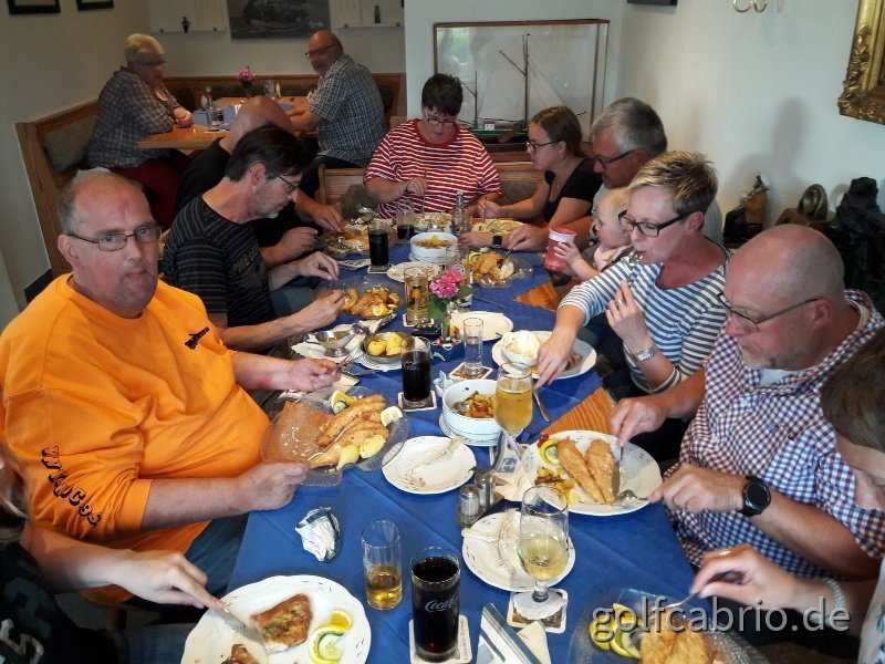 Im Anschluss an unseren Fotohalt haben wir unsere Fahrzeuge beim nahegelegenen Parkhaus am Binnenhafen abgestellt und sind zum Marktplatz und um den Hafen spaziert,- Fischbrötchen essen gehört natürlich dazu.