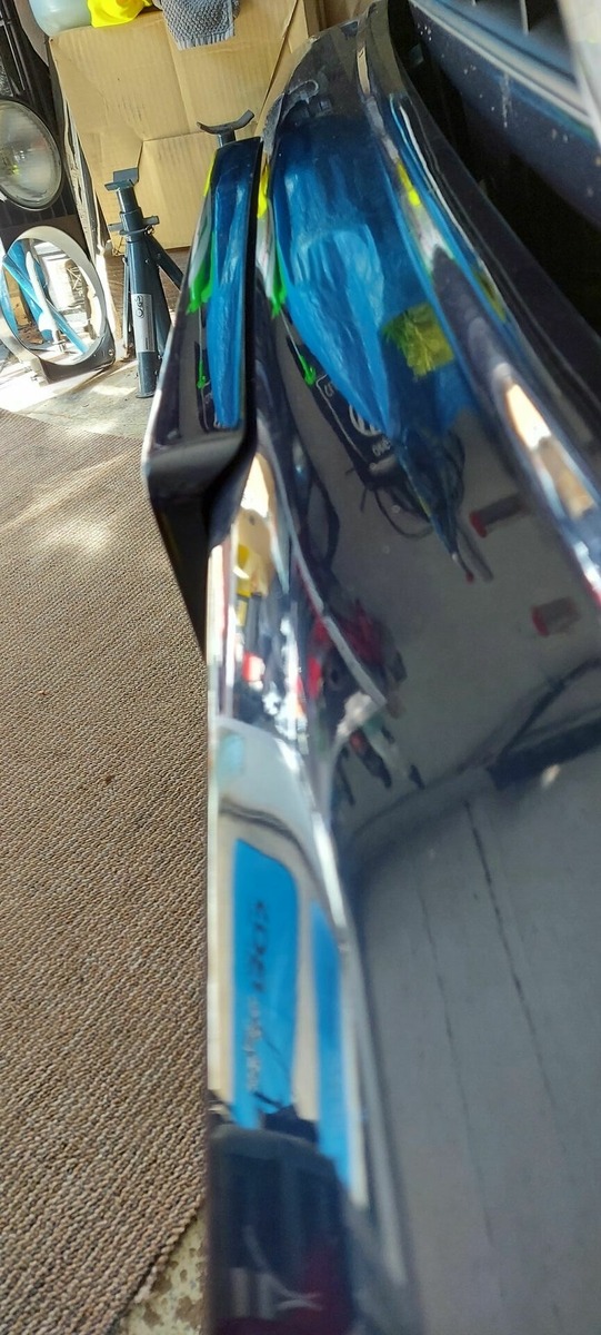 Dann wollte ich den Kennzeichenhalter mal dran machen,der lag 12 Jahre frisch lackiert im Regal aber der passt irgendwie nicht wirklich. Die Spalte sind mir ein wenig zu groß...