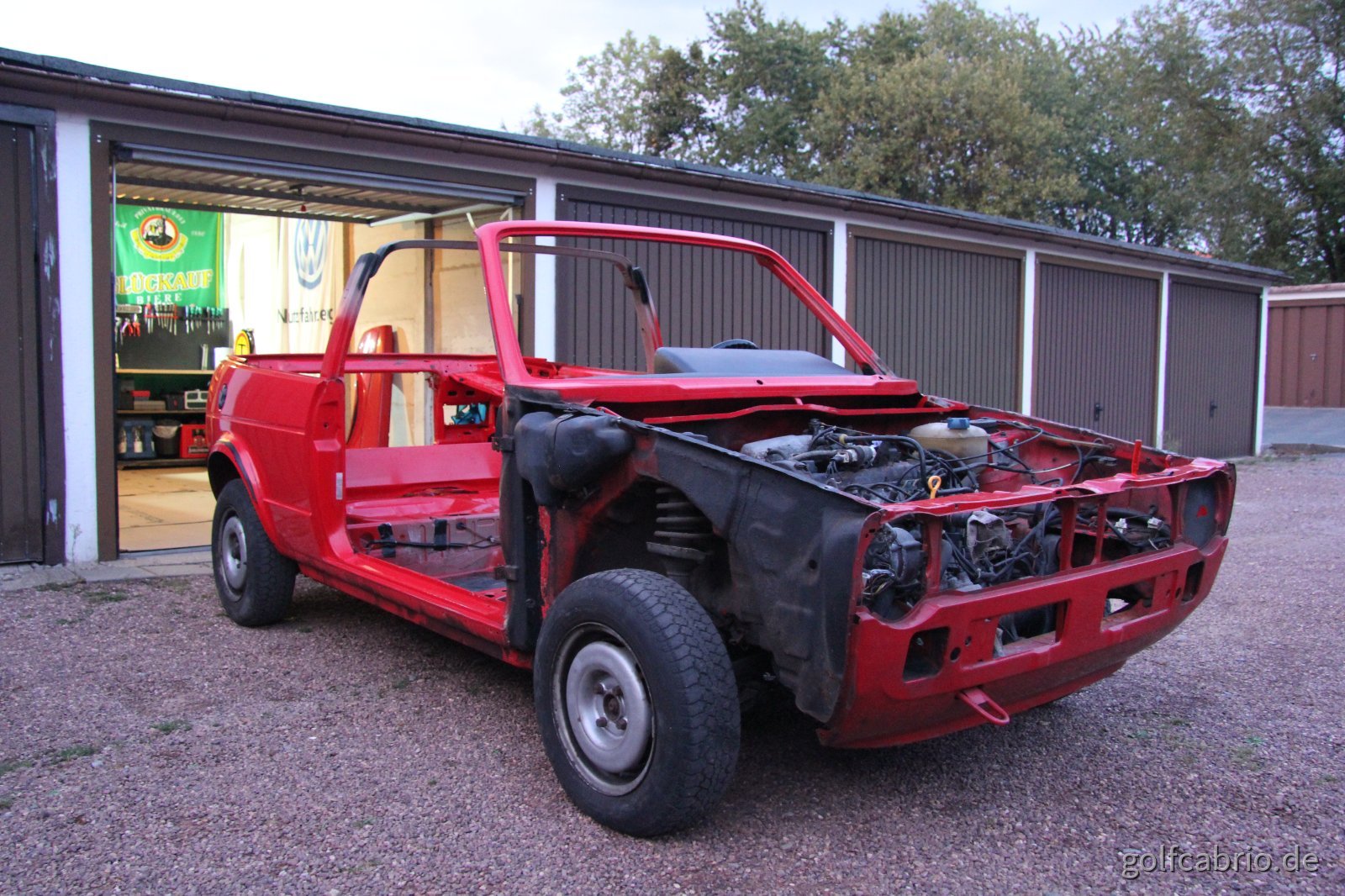 In den letzten 3 Monaten ist schon viel passiert. Das Cabrio ist zu einem Großteil zerlegt. Eigentlich ist nur noch Armaturenbrett, Motor und Auspuff dran. Bei Interesse gern mehr Bilder, die muss ich aber erst sortieren. Eins hab ich aber auf die schnelle: