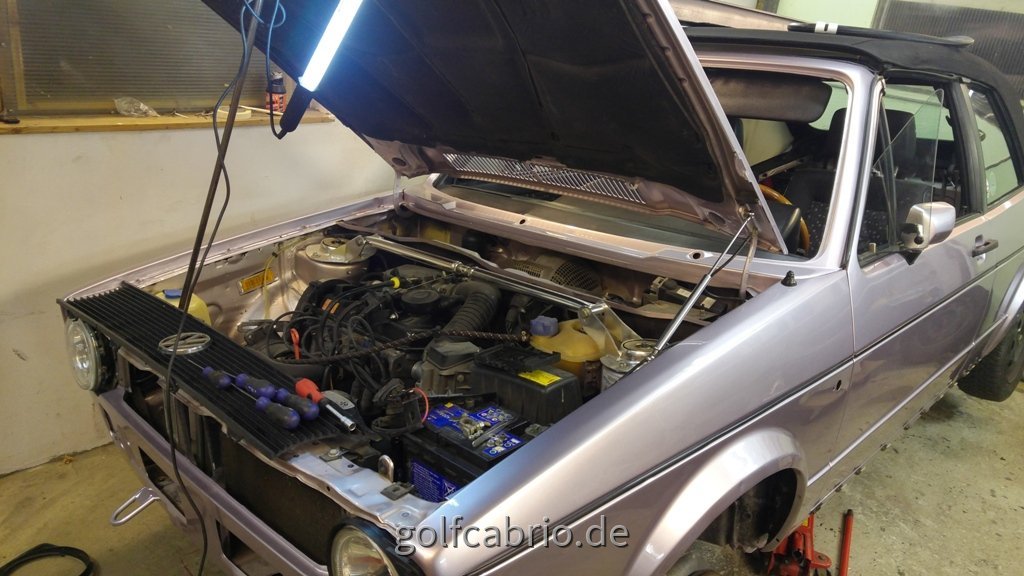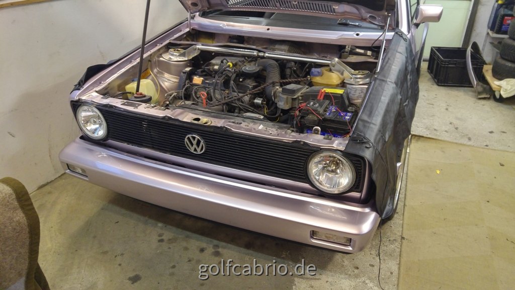 Inzwischen vergnüge ich mich mit Staubwischen im Innenraum ,- Felgen putzen, Kühlergrill reparieren und anderem Kleinkram.