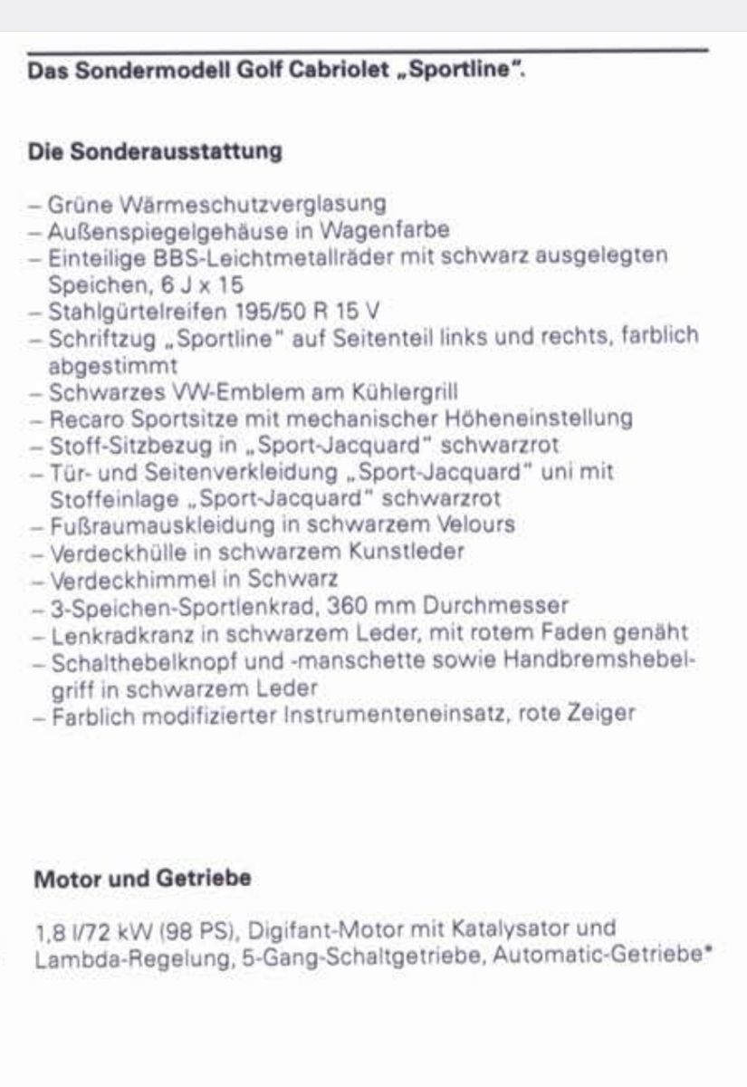 Classicline-Sportline-Fashionline nov 1991 (All)La brochure commerciale originale VW allemande de la golf 1 cabriolet Classicline, Sportline, Fashionline de novembre 1991www.golf1cabriolet.com