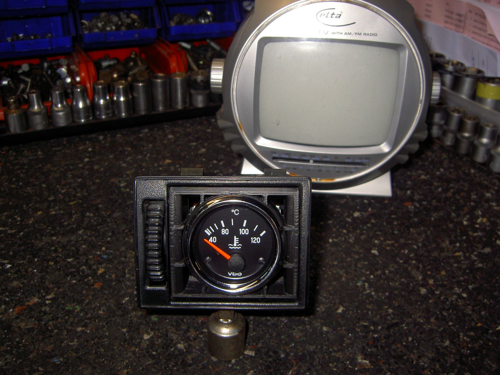 Der abgebildete Zusatzinstrumenten-Halter kommt ebenfalls aus der Retorte und wird bald eine analoge VDO-Wassertemperaturanzeige beherbergen und die in meinen Augen völlig überflüssige linke Frischluftdüse harmonisch ersetzen.
