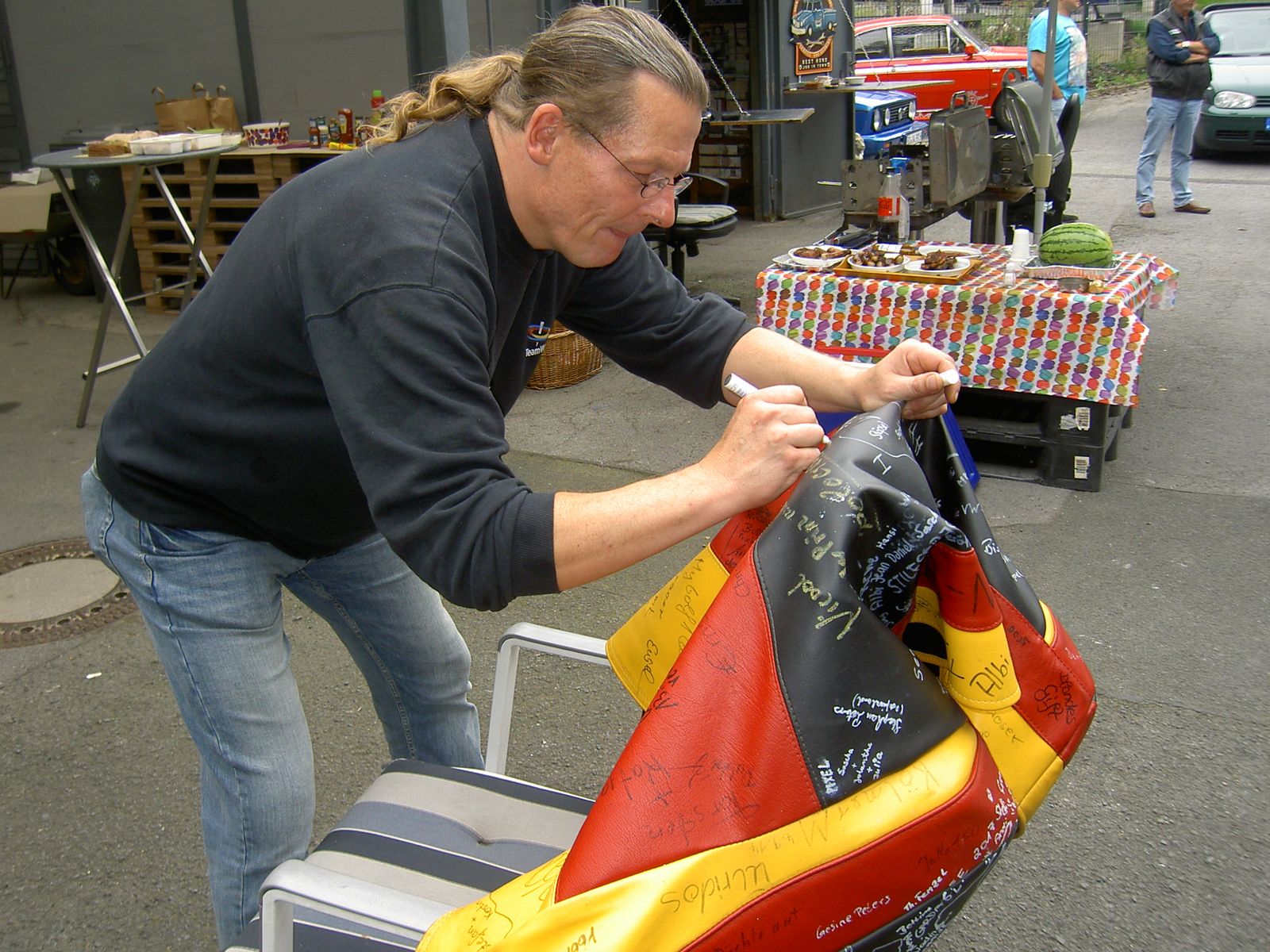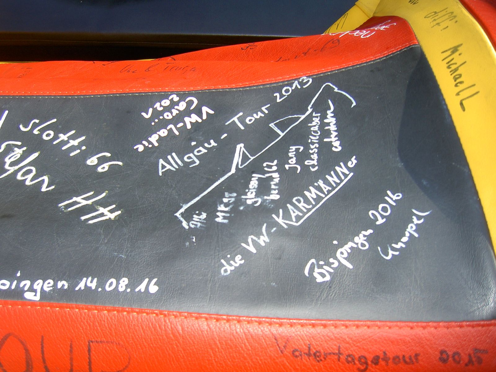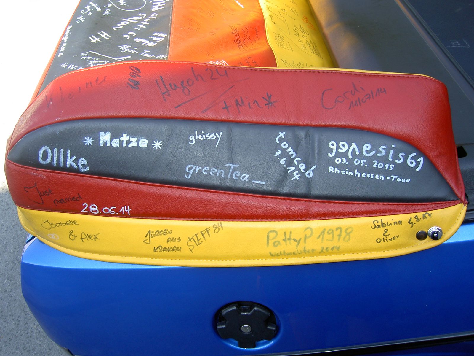 Ich bringe dann am 4.9. ein paar nagelneue weiße Reifen-Marker (Eddingse) mit zum signieren