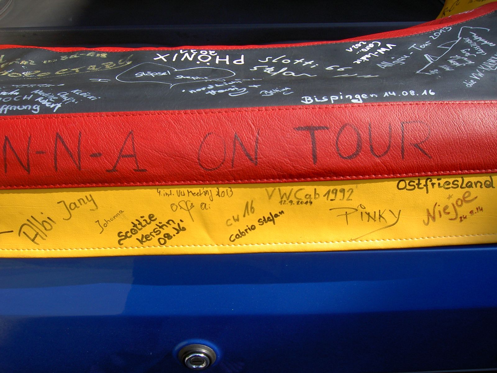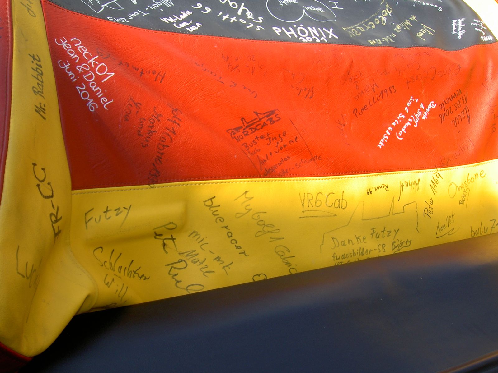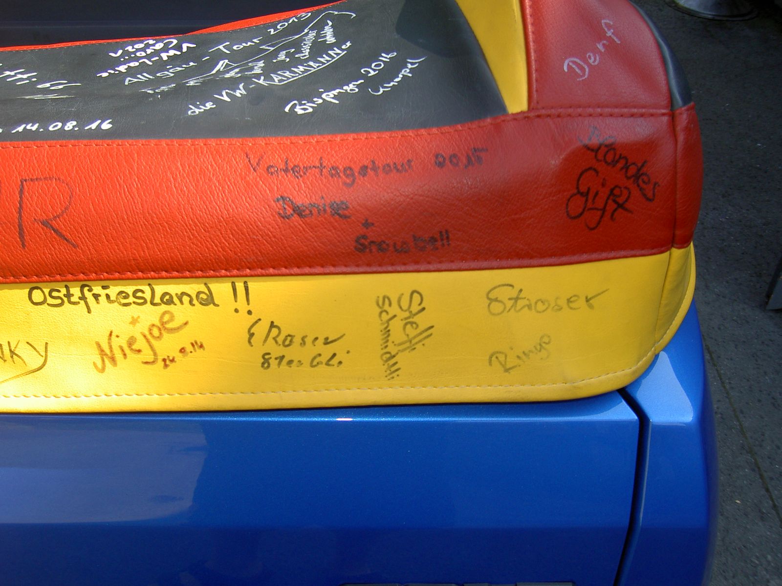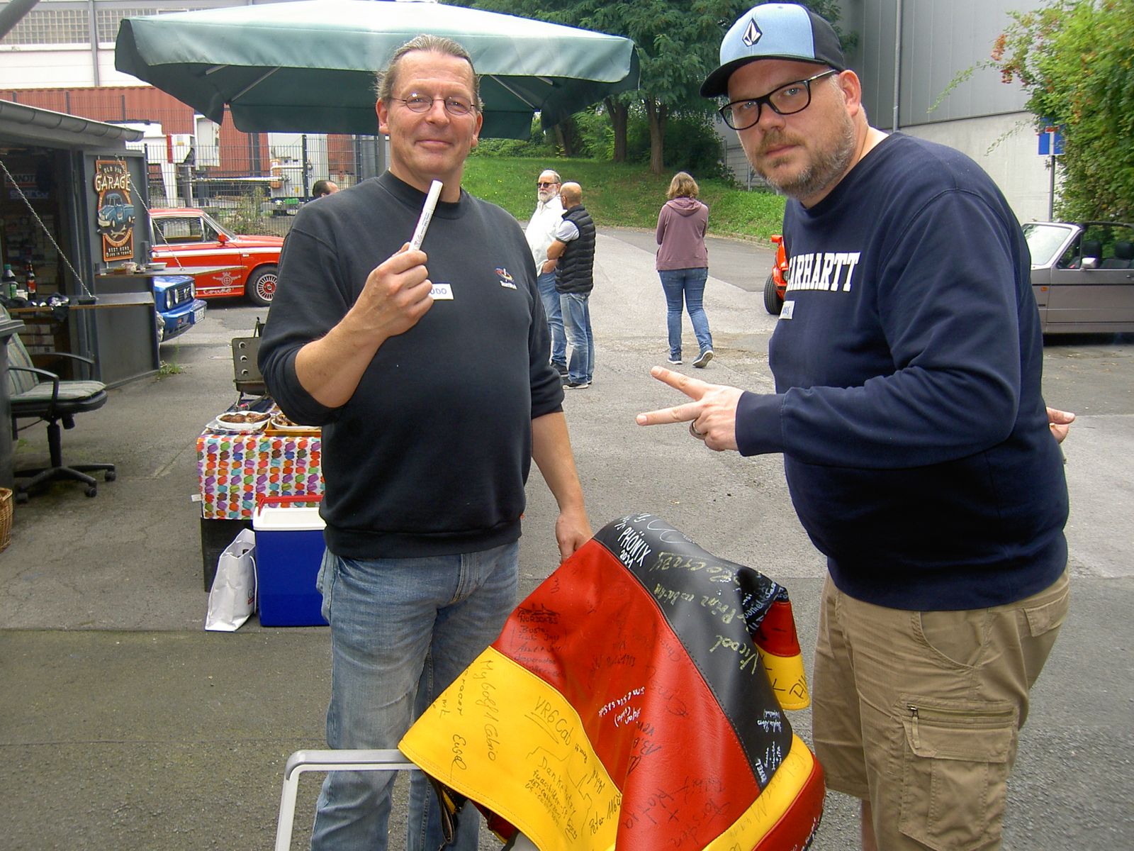 Ich bringe dann am 4.9. ein paar nagelneue weiße Reifen-Marker (Eddingse) mit zum signieren