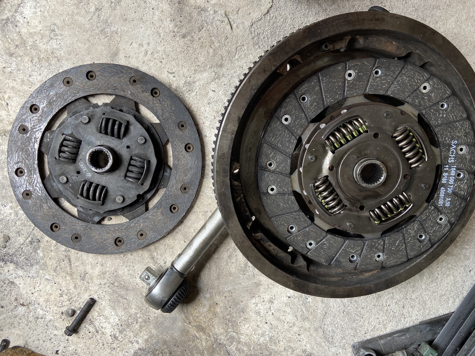 Nachdem ich festgestellt hatte, dass mit dem Hebel am Ausrücklager und mit dem Ausrücklager selbst alles in Ordnung ist war mein Verdacht, dass ich beim Einbau der neuen Kupplung wohl irgendwas falsch gemacht haben muss.
