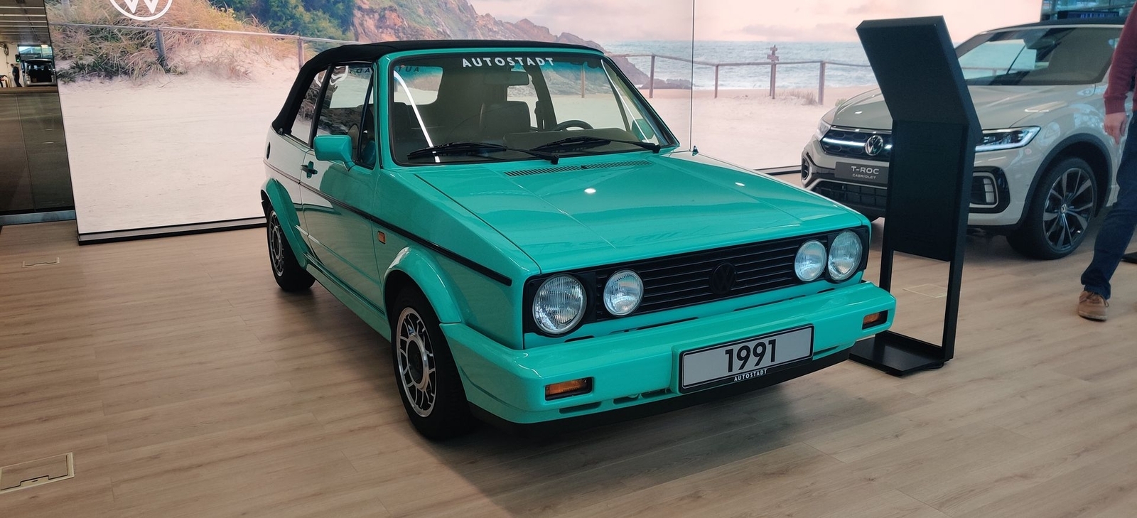 Ich war heute in der Autostadt in Wolfsburg. Im Kundencenter steht zur Zeit ein 91er Golf 1 Cabrio mit spannender Farbe und einem Detail, welches mir ins Auge sprang.