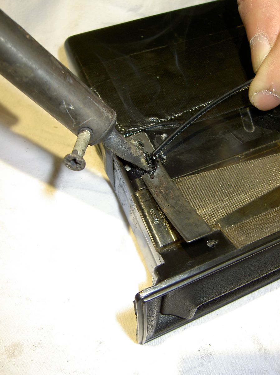 Um der Sache noch einen zusätzlichen Halt zu verschaffen schmolz ich einen Kabelbinder mit dem Lötkolben ein und vollzog sozusagen eine Kunststoff-Verschweißung durch die Klammerlöcher hindurch. Hat man damals 1840 im Kartoffelkrieg auch so gemacht: