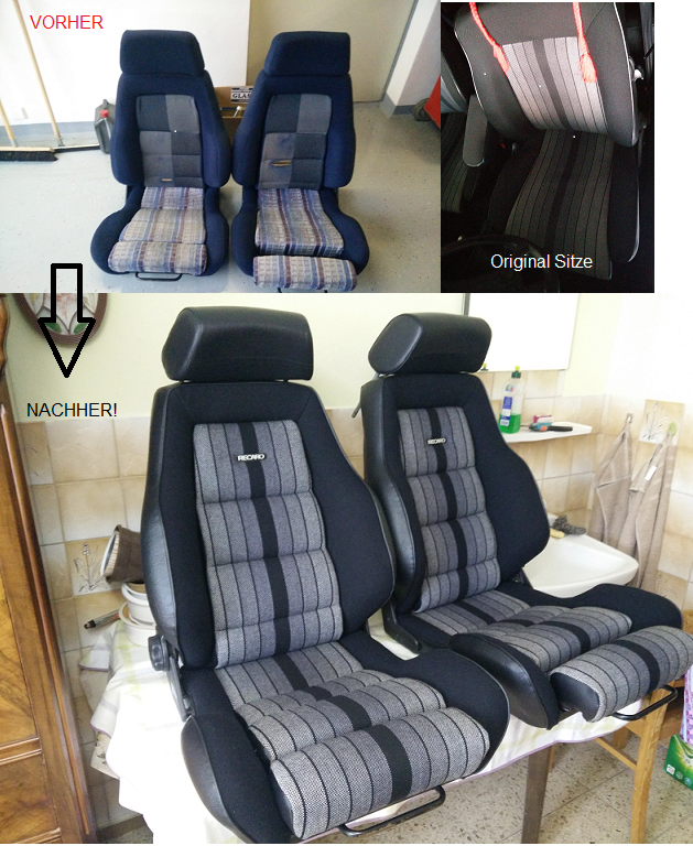 Vor weit über 6 Jahren hatte ich "irgendwo" im Forum die RECARO Umbauen gesehen und wollte genau so was haben, zuerst für mein Flieder Toscana Cabrio, das wurde leider von einer Kollegin gehimmelt, dann für mein blaues Standard Cabrio was dem folgte, dazu habe ich dann Soff, gebrauchten, gesammelt: 3 Rückenteile, 3 Sitzteile und 4 Teile Rücksitzbank, alles einmal durchgewaschen und nachdem ich keinen Sattler gefunden hatte doch mal beim FUTZY nachgefragt, ob er nicht doch ... und JAAAAAAAA, ich hatte Glück! Den ersten Satz Recaros waren für den Golf 1 "Pirelli" besser geeignet und dann die zweiten zum Cabrio Umbau genommen. Versand per Einwegpalette, zweimal 2 Sitze ....