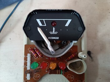 P.S.: Im naechsten Kombiinstrument was ich habe, sieht es noch boeser aus. Da hat irgendwer die LED schwarz angemahlt und der Skalendeckel ist eine Wellenlandschaft. Ich muss also eins von den drei da oben wieder hinbekommen.