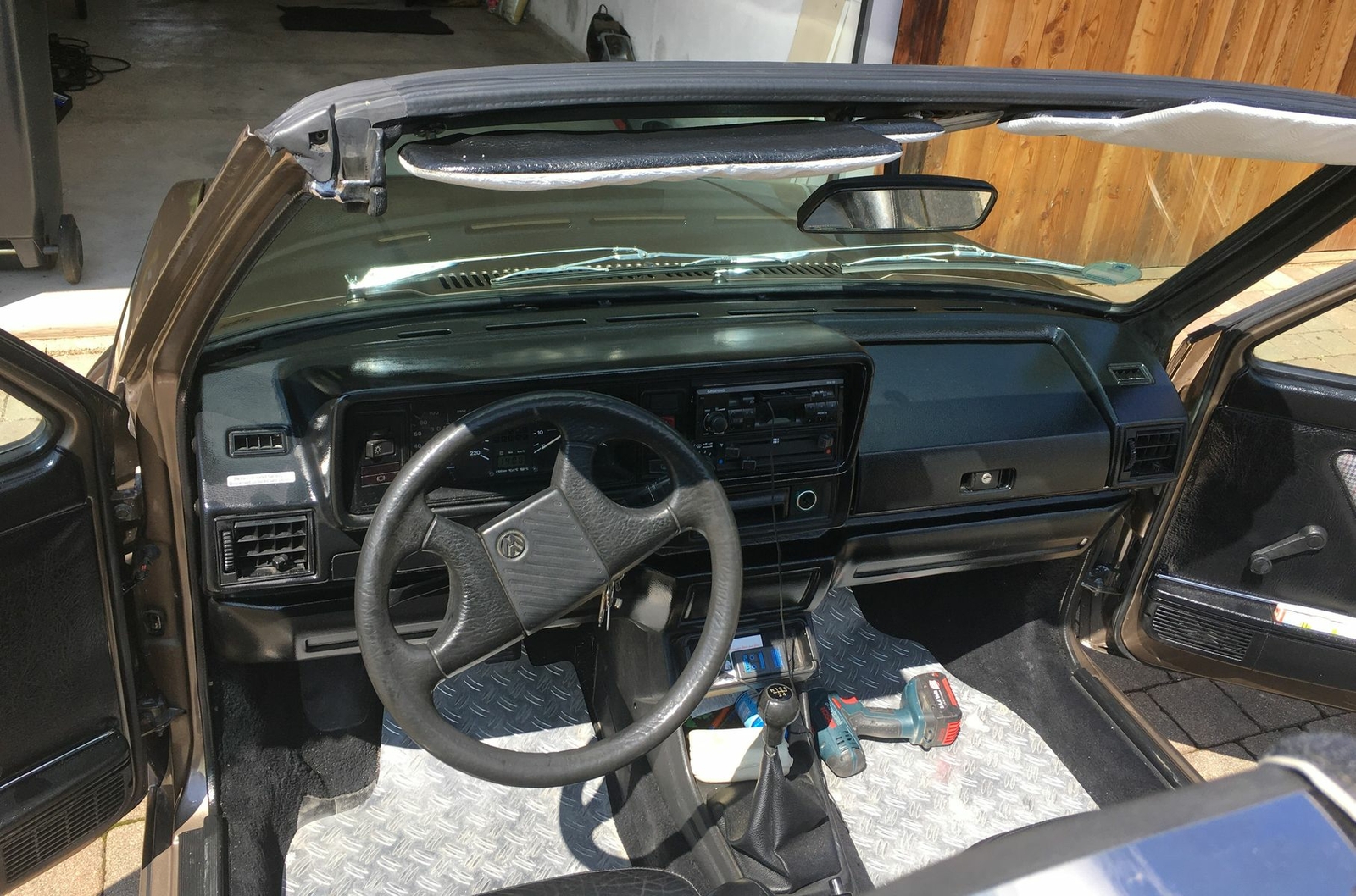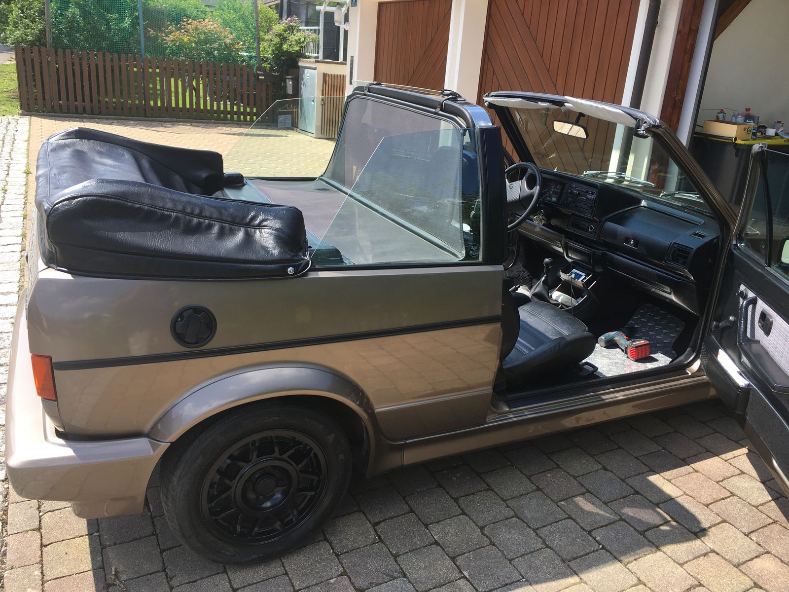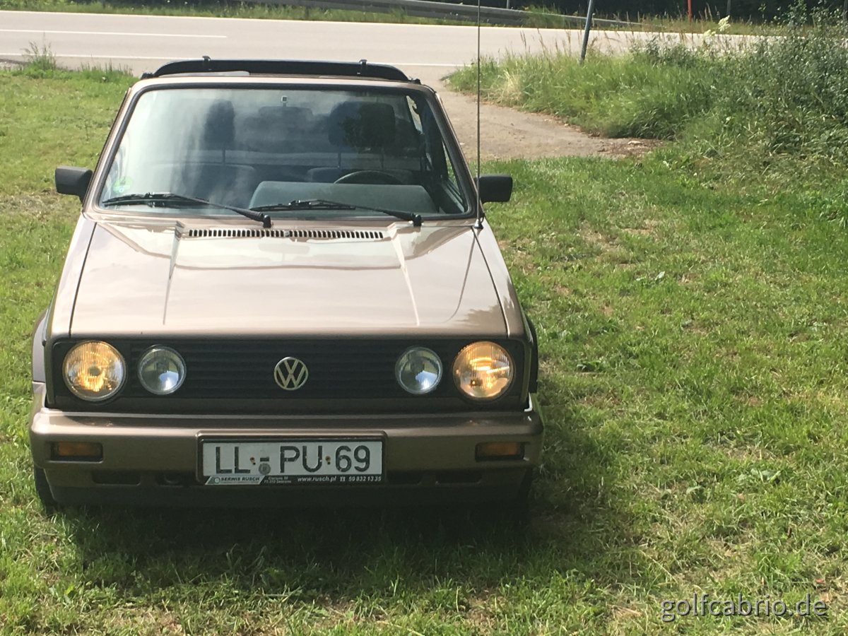 Hallo, ich bin der Mani, war auch ab und zu im alten Forum schon aktiv- Mein Cab ist ein Bj 1988. absolut unverbastelt und hat den JH Motor drin. Farbe ist bronzegrau metallic, original war ein Dach in Beduin daruf, aber mein Sattler hat vor etwa 5 Jahren ein schwarzes Vinyldach drauf gemacht. Im letzten Jahr wurde mein Kleiner in Polen optisch rundumerneuert, neue Teile eingeschweißt, Roststellen wurden entfernt, Hohlräume versiegelt und er wurde mit neuem Unterbodenschutz versehen.