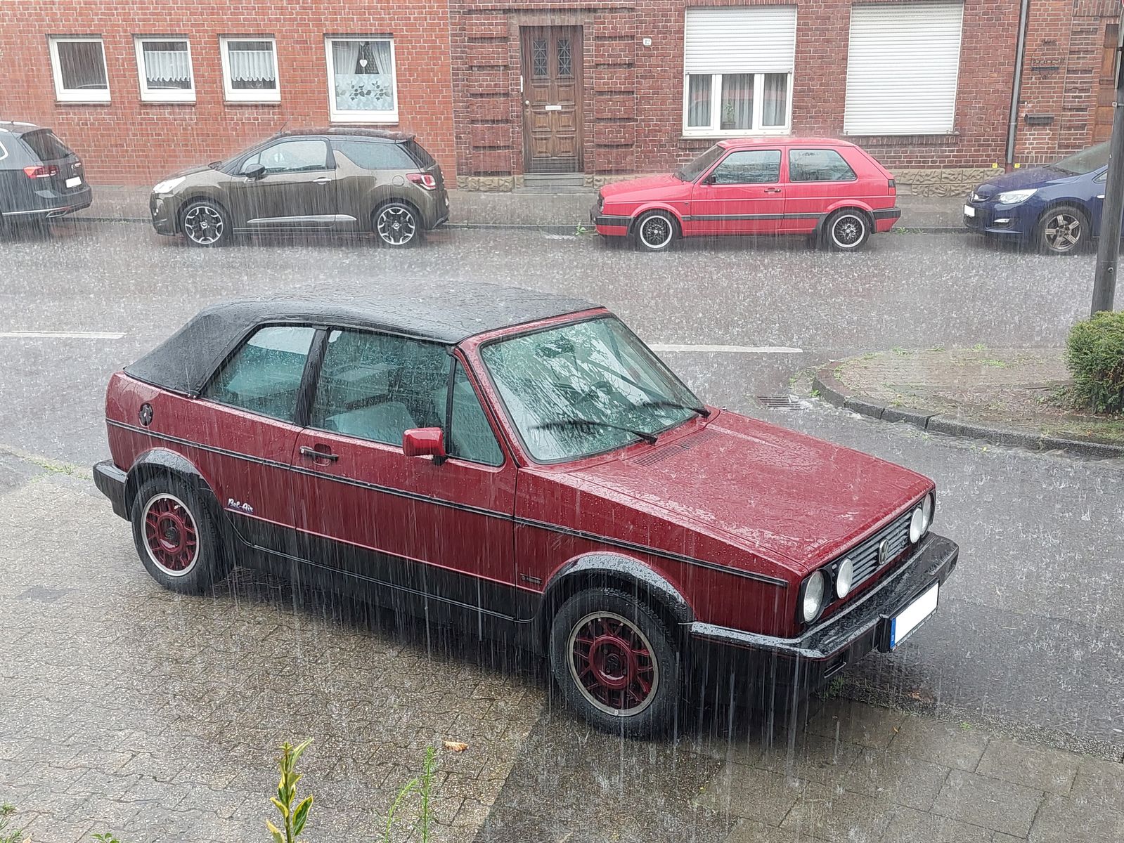 Andere Cabrios: es ist bei den zwei Einser-Cabrios geblieben, die ich schon früh erwähnt hatte. Gegen Ende noch ein Einser-Caddy, der im Vorbeifahren sehr gut restauriert aussah und sofort freudig zurück gegrüßt hat - genauso übrigens wie ein Opel Commodore mit H-Kennzeichen auf Oldtimer-Ausflug. Vor dem letzten Hotel stand dann noch ein Sechser-Cabrio neben uns und meine Frau meinte sehr treffend, dass die Autos nicht wirklich etwas miteiander zu tun haben.