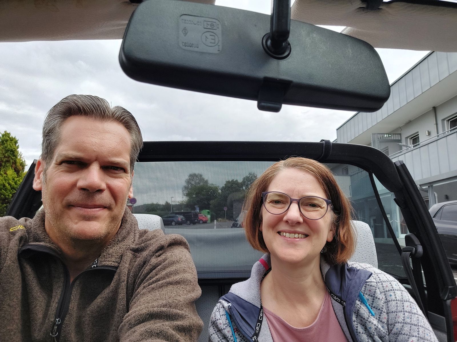 Und damit zum Fazit unserer Sommer-Deutschland-Tour: es war toll und hat Riesen-Spaß gemacht! Ich hoffe, das sieht man Fahrer und Beifahrerin kurz vor dem Start zur letzten Etappe an: