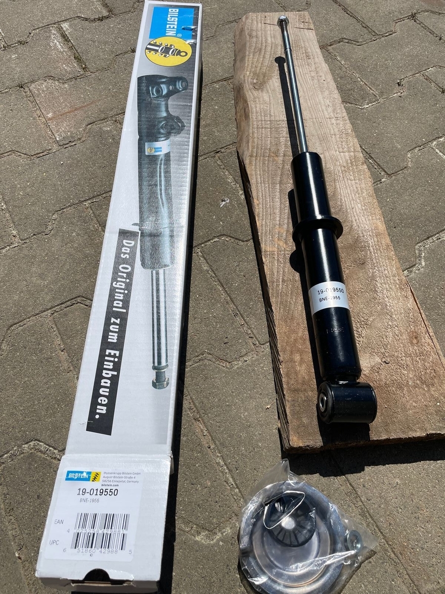 Habe das ganze gestern Abend montiert und was soll ich sagen. Ich habe es fast geahnt hinten ist das Auto optisch sehr Tief. Habe alle Teile neu gemacht. Auch die Gummipuffer oben.