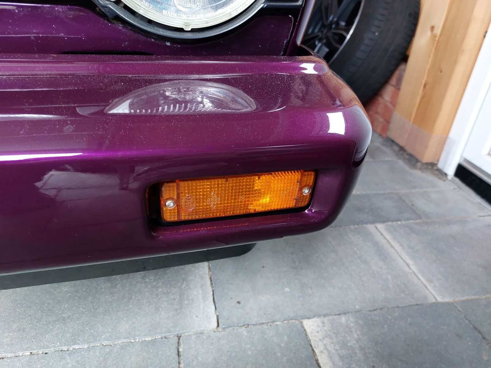 Dann hab ich endlich mal die Blinker nach vorne gesetzt - sieht schon etwas besser aus als Serie. Und die Kühlergrill-Schraubenlöcher haben wieder Stopfen. ![]()
