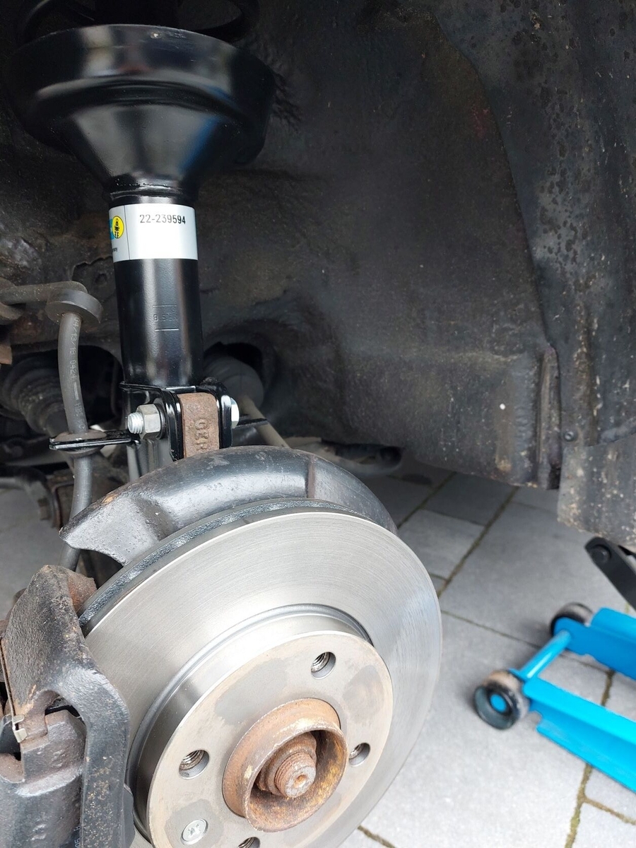 Übern Winter hat das Cabrio neue Federbeine (Bilstein B6 inkl. neuer Federn) samt Unibal-Domlager (hoffentlich nie wieder wechseln!) und ne neue Bremse vorne bekommen. ![]()