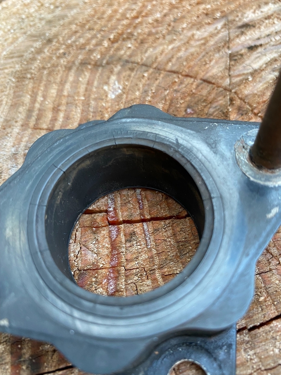 Und so von unten mit den schönen Abdrücken des Vergasergehäuses.