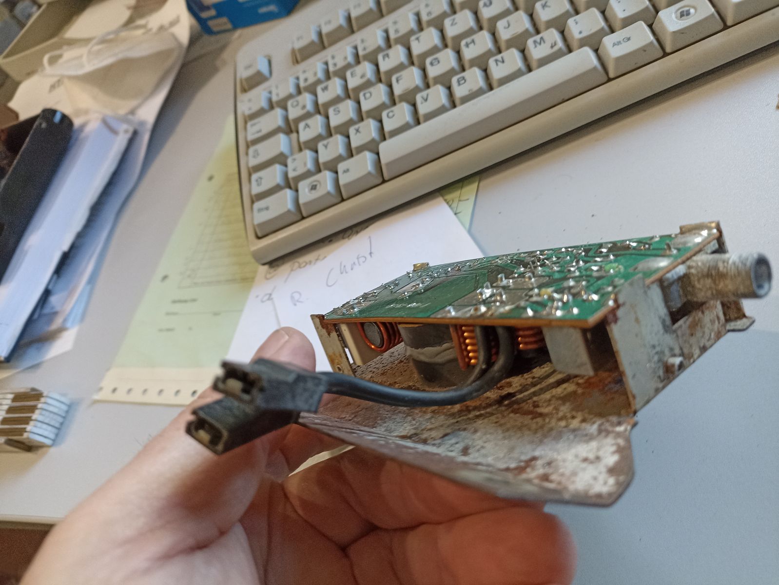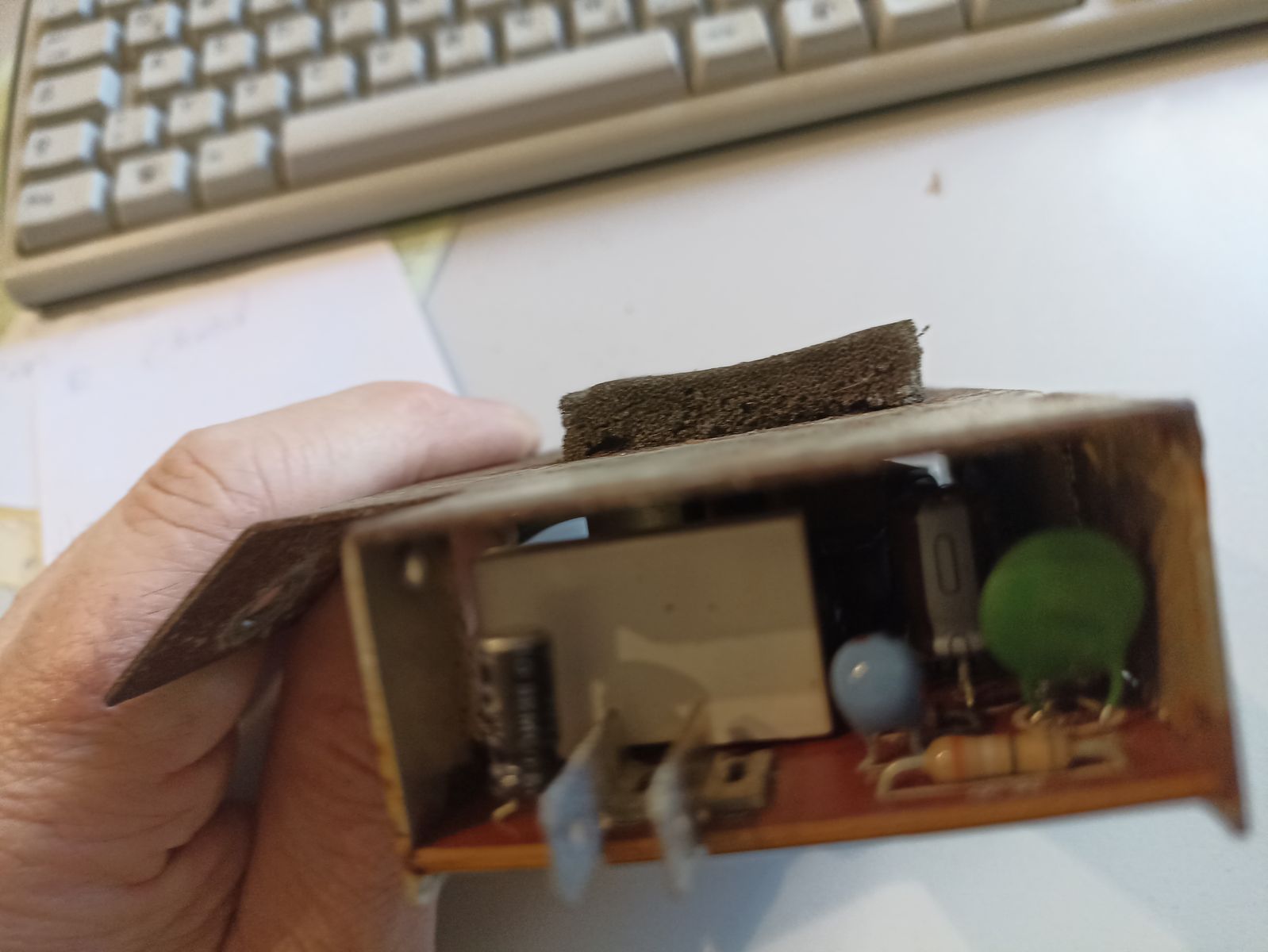 Jemand Ahnung von so nem Zeugs. HAtte gehofft da ein paar vertrocknete Kondensatoren zu finden .... ist aber erstmal dermaßen abgeschirmt und verlötet, dass man nix sehen kann