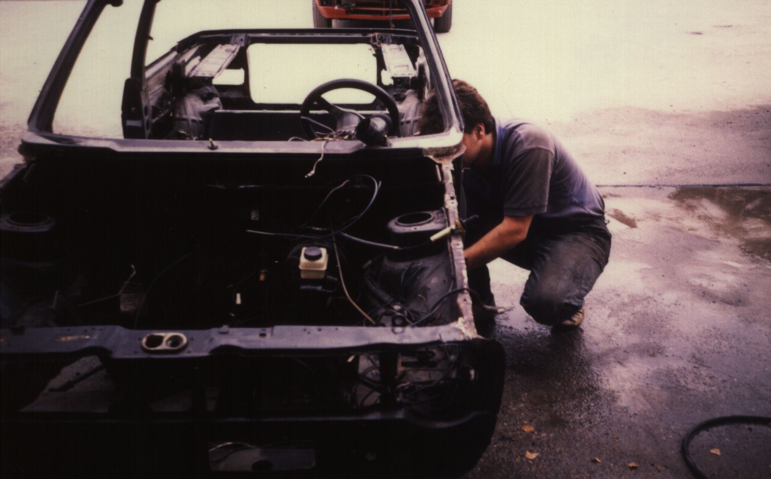 1992 dann die erste Totalsanierung . Der verpfuschte Heckschaden wurde mit neuem Heckblech und Radläufen etc richtig behoben .... sämtlicher Rost entfernt und alle Schweißnähte zur VErsteifung nachgeschweißt.... in dem Zuge kamen Recarositze rein, ein halbes Jahr später flog der JB Motor zugunsten eines KR raus. Bei der Aktion verschwand auch der Tittentacho und das neuere Abrett zog ein um den G2 Tacho unter zu bringen .