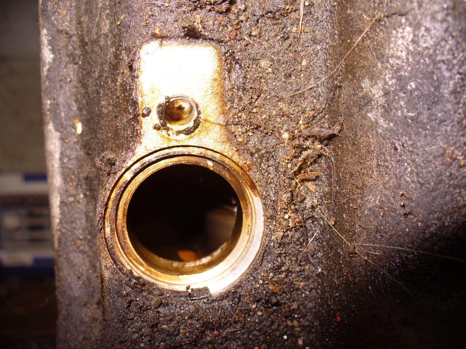 Die Reste der Tachowelle - die Dichtung hat sich in diesem Fall schon in ihre Bestandteile aufgelöst: