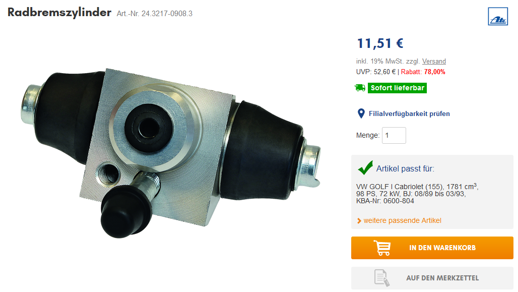 Und bei KZteile24 z.B. gibt es gar keine passenden Radbremszylinder von FAG - wohl aber von Textar: