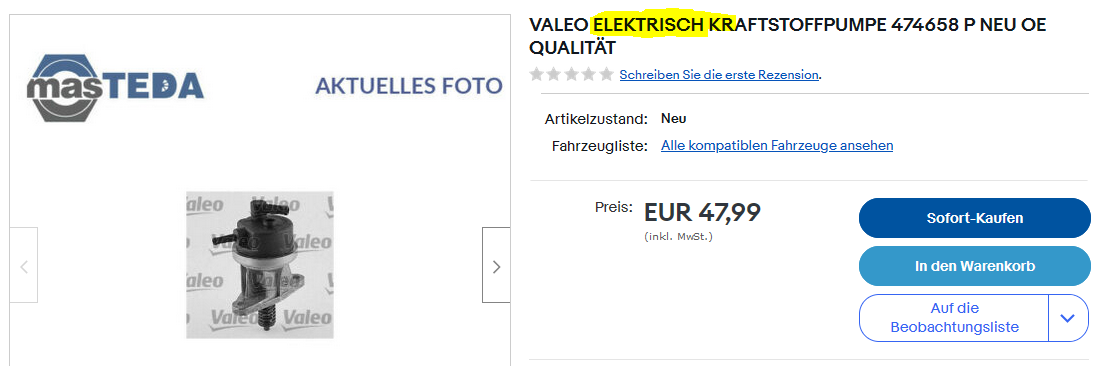 Die VFP von Valeo gibt´s da aber nicht - nur die Hauptpumpe - hmmm