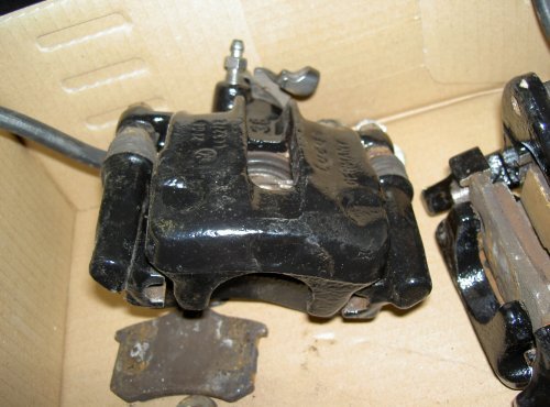 Als ich den Schrott so auf der Werkbank liegen seh, kommt mir das Teil irgendwie bekannt vor - ich glaub, so nen Sattel hab ich doch da. Ab ins Teilelager und auf einer Passatvorderachse vom 90PS Passat mit 256er Bremse ist genau das richtige Teil und zwar in einem super Zustand (ist ja auch aus 1995er Passat mit nur 90tkm) .