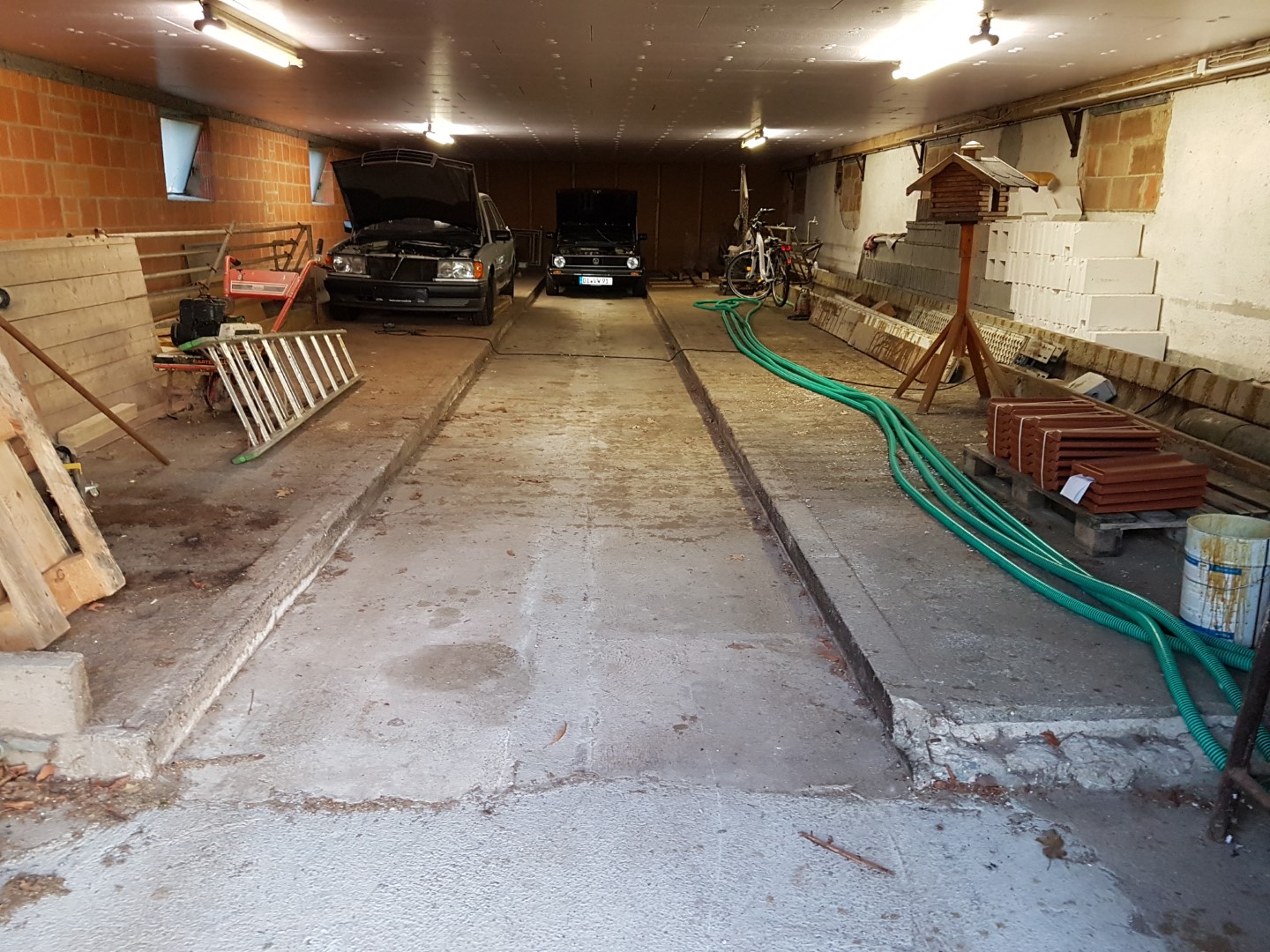 Nachdem ich mir den W201 gekauft hatte, war schnell klar, dass ich den seit über 10 Jahren vor mir hergeschobenen Hallenumbau endlich durchziehen wollte, um für meinen W201 und das Cabrio einen angemessenen Stellplatz zu schaffen. Das dabei noch mehr Platz für weitere Autos entsteht war klar.