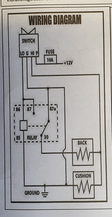 Matte: zuschneidbare Carbon-Matten die je Seite aus Sitzmatte, Lehnenmatte, Schalter für 2 Stufen und Relais bestehen