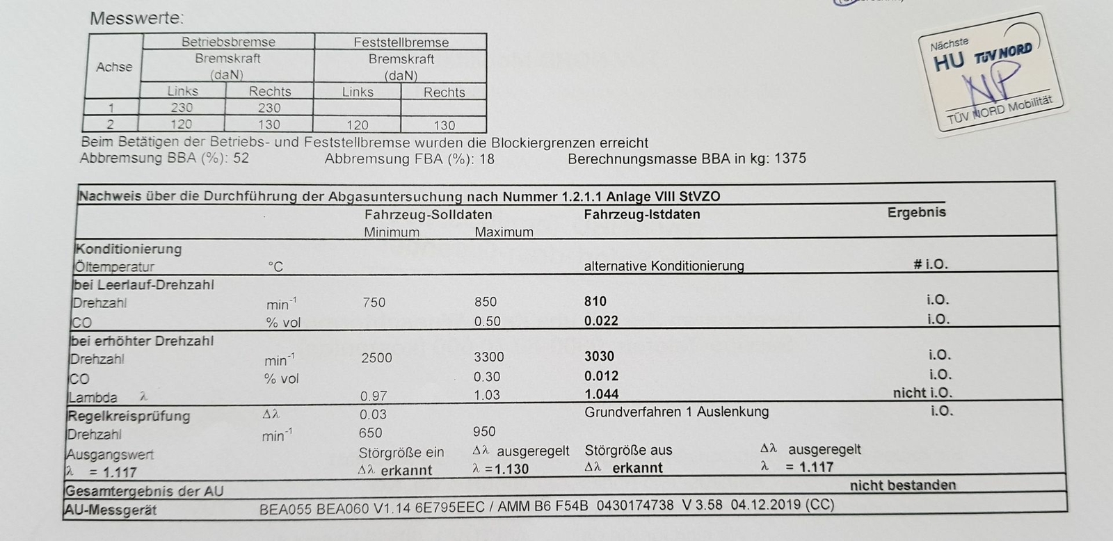 Habe leider die AU nicht bestanden uns somit keinen TÜV bekommen ( aber den Bremsenumbau eingetragen