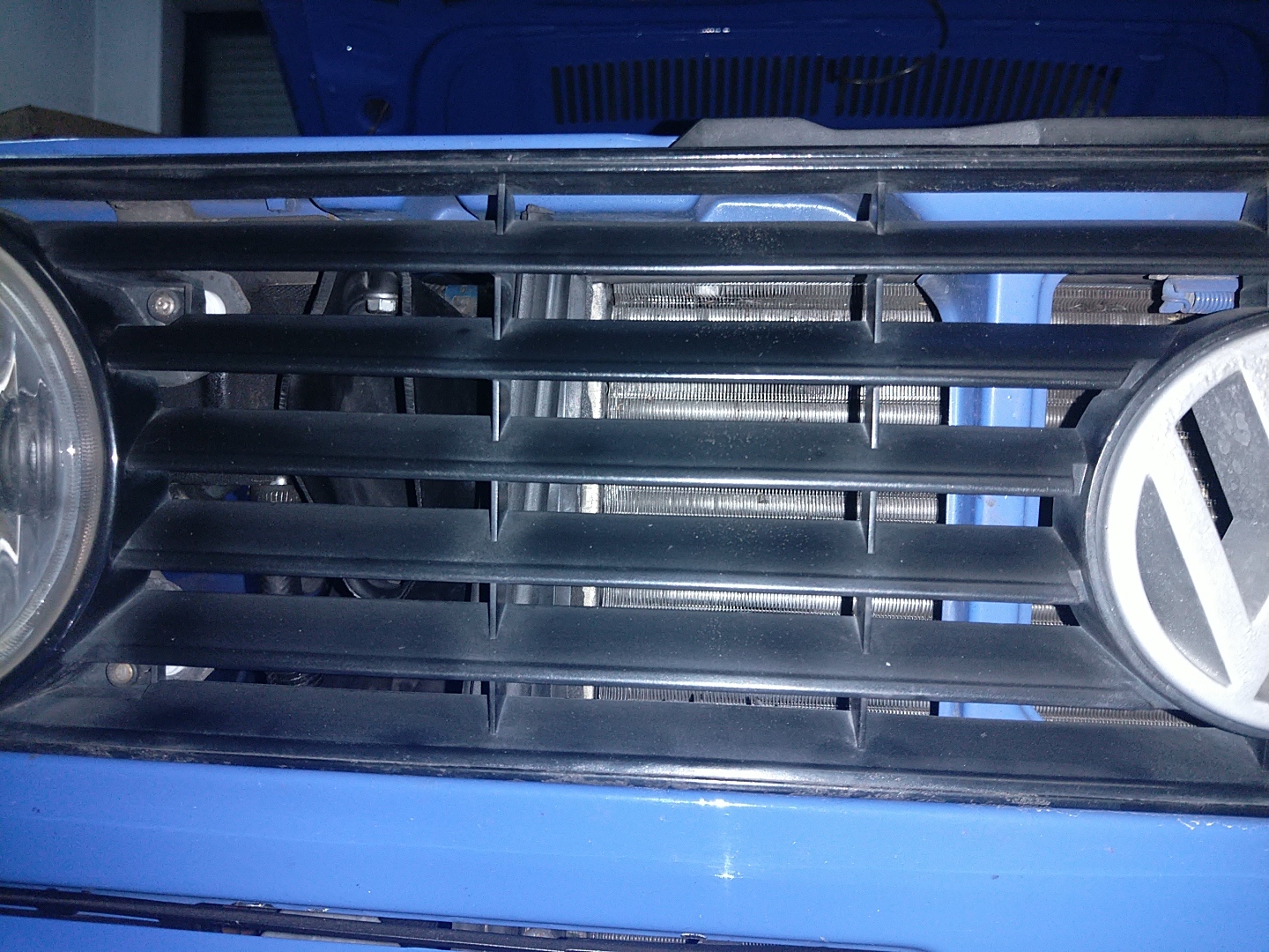 Ich wollte erklären, dass ich nicht weiß, ob der Einbau eines breiteren Kühlers den originalen Ölkühler in Fahrzeugen, die ab Werk damit ausgestattet sind, beeinträchtigt. Ich vermute zwar, dass dies nicht der Fall ist, kann es aber nicht bestätigen, da ich diese Kombination nie getestet habe. Der von mir vorgeschlagene Kühler ist nicht riesig, aber 50 mm breiter als der Originalkühler im europäischen Golf 1 2H. 525 mm vs. 575 mm, das ist eine Steigerung von fast +/-9%.