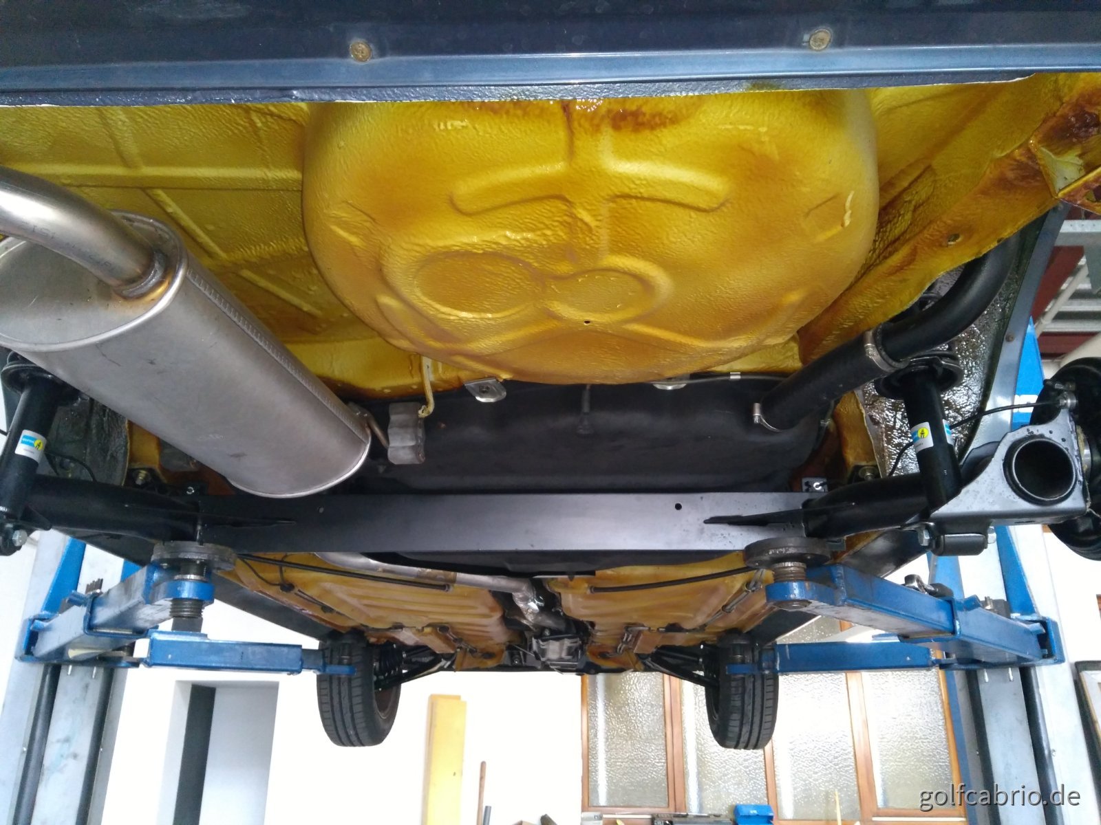 2. von meinen 53B bin ich es gewöhnt, dass vorne noch zwei solche "Knubbel" am Unterboden sind, die gut als Wagenheber- bzw. Bühnenaufnahmepunkte geeignet sind. Die hat das Cabrio aber nicht!?