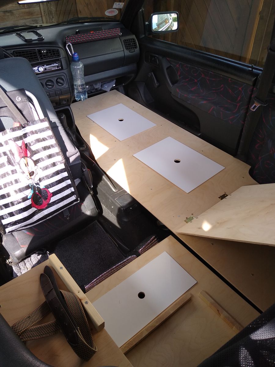 Der Wohnausbau ist ruck-zuck (durch das offene Dach) wieder ausgebaut. Sitze wieder rein und Oma kann wieder ihre Enkel durch die Gegend kutschieren.