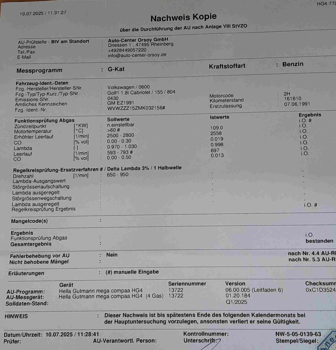 Leerlauf zu hoch: Dekra; CO bei HU 0,5