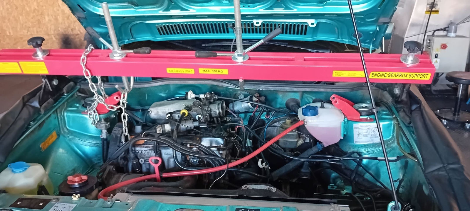 ersteinmal Draußen war . Danach wurden noch gerade die Getriebelagerböcke mit getauscht die waren ebenso fertig .