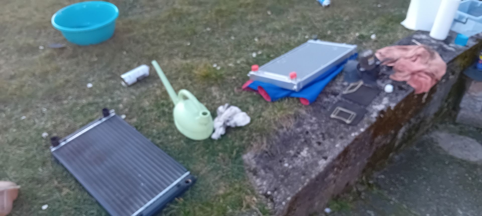 Soo, heute ging es weiter an der Diva . Sie hat einen Neuen Alu Kühler sowie einen Ausgleichsbehälter bekommen , zuvor haben wir das komplette Kühlsystem gereinigt mit Liqui Moly. Wahnsinn was da raus kam , danach noch mit klarem Wasser solange gespült bis wirklich alles Draußen war.